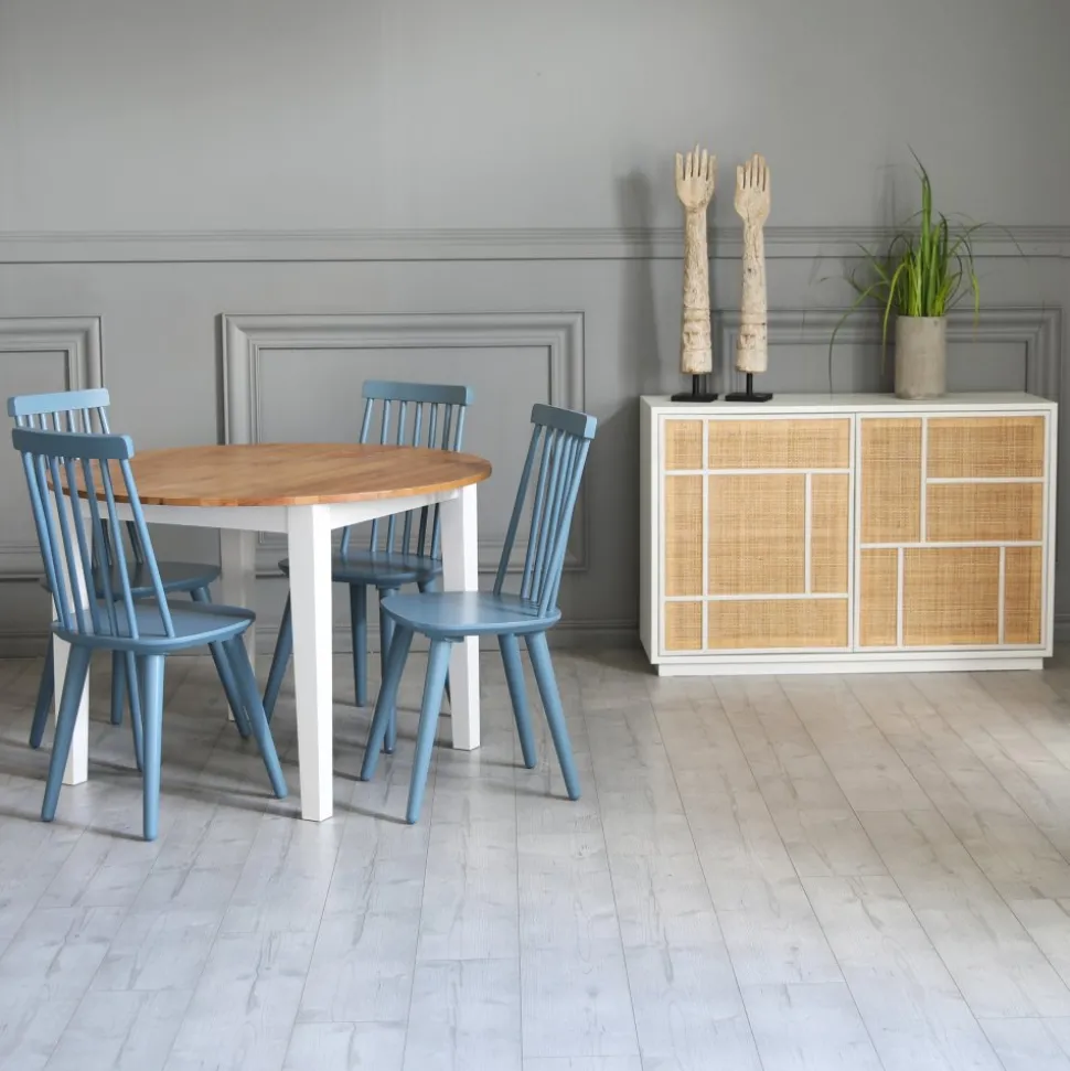Trästolen är tillverkad i massiv heveaträ som är slitstarkt och kvalitativt, med en fabriksmålad yta i snygg blå finish.