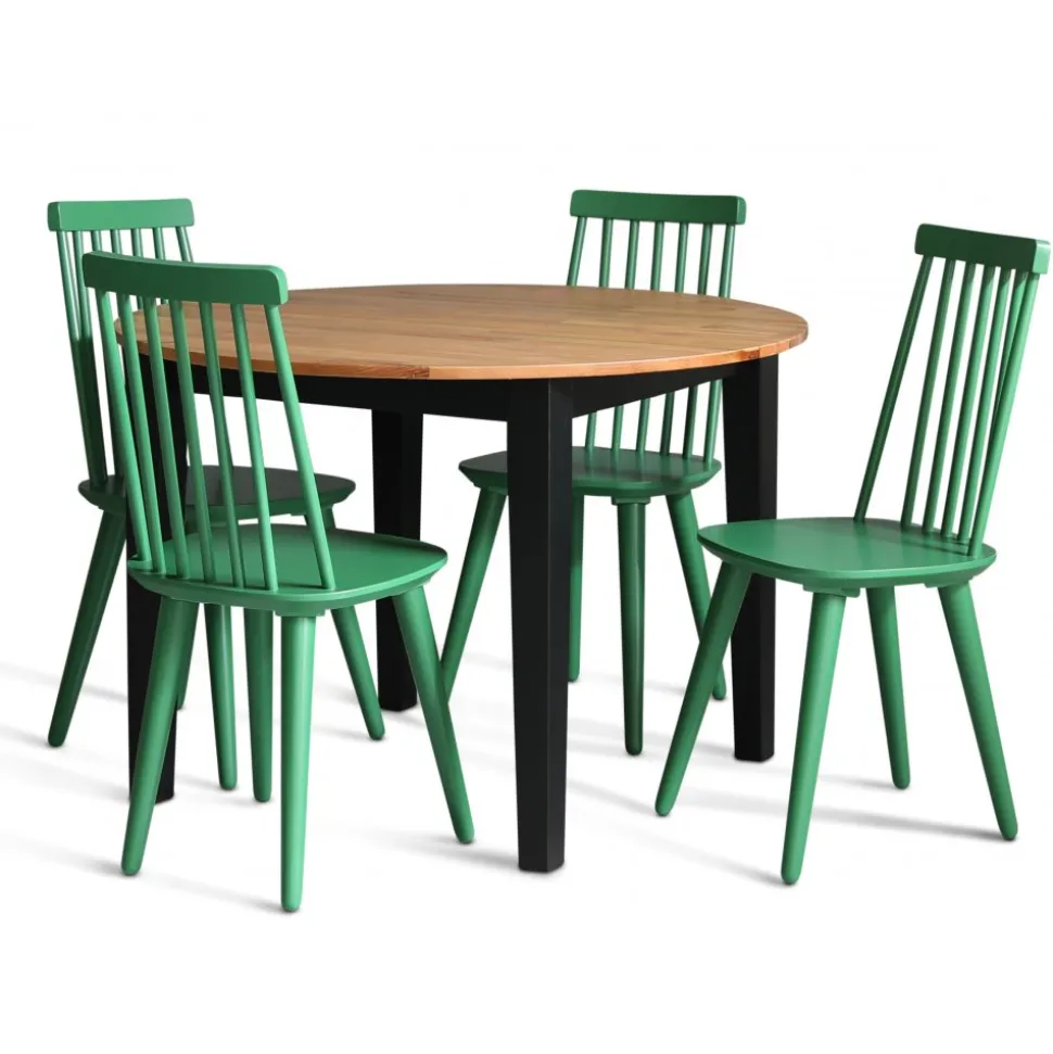 Trästolen är tillverkad i massiv heveaträ som är slitstarkt och kvalitativt, med en fabriksmålad yta i snygg grön finish.