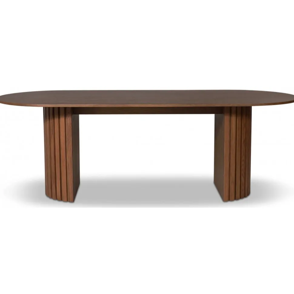 Vår PiPi bordsserie står för hantverk, design och hållbarhet. Vi erbjuder valnöt, whitewash, svartbetsat trä och ek. Serien innehåller olika storlekar och utföranden. Välj just ditt utförande för matplatsen. Denna modellen har en snygg ovalskiva, utförande valnöt fanèr.