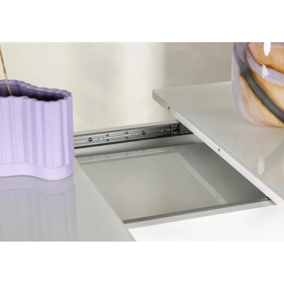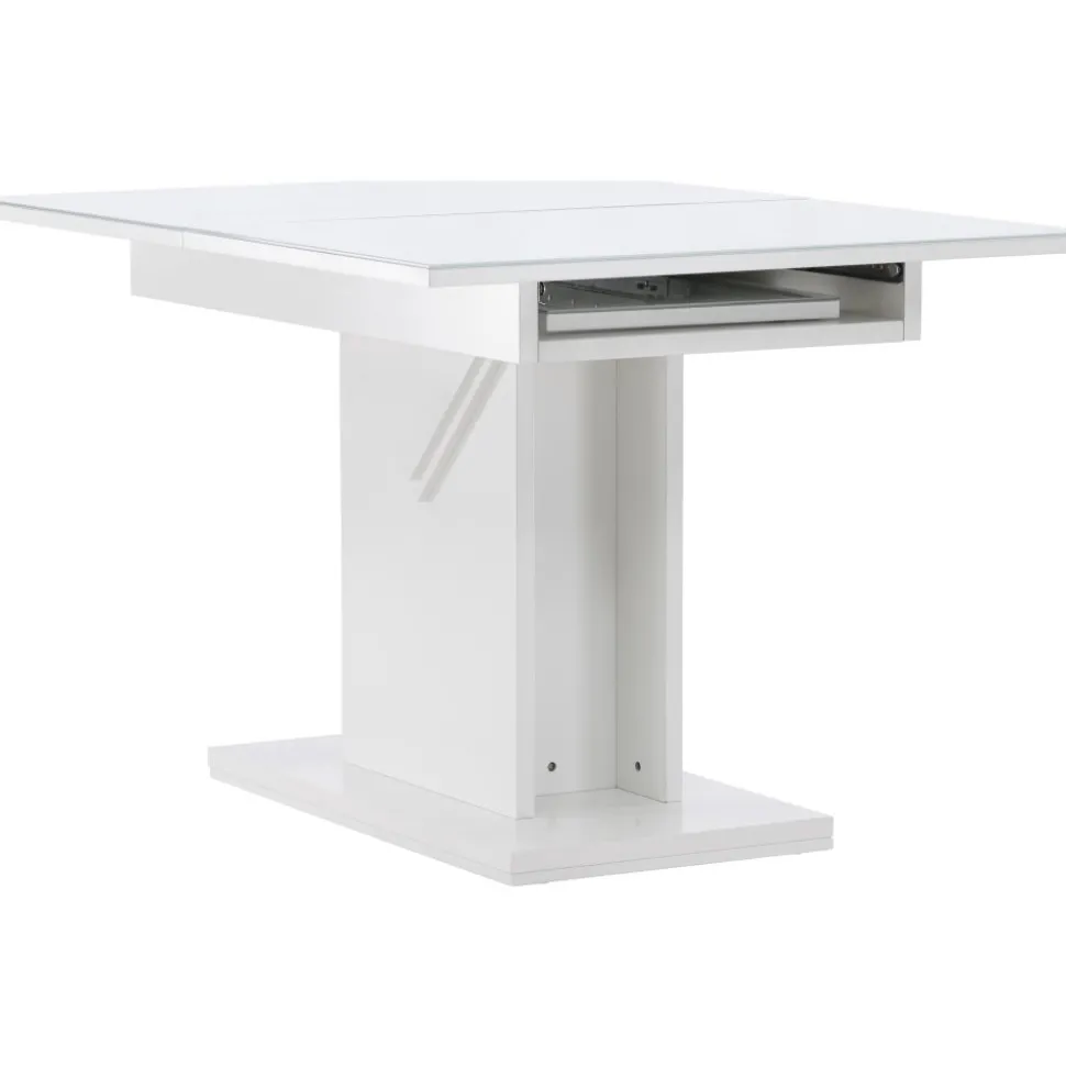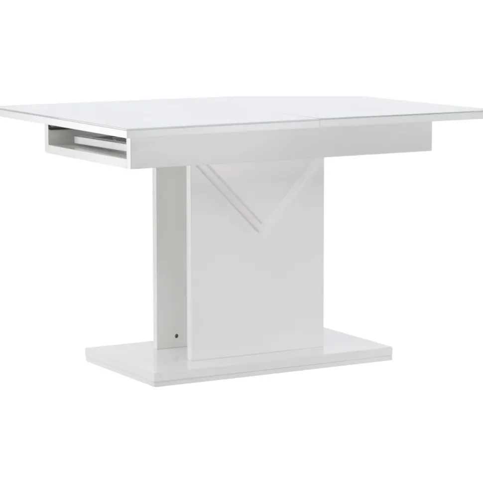 Elegant och pampigt med bordsskiva i MDF med en toppskiva i glas. Underredet är robust och center placerat. Bordet är förlängningsbart vilket gör att det lämpar sig utmärkt både till små och stora sällskap. Bjud in till många sociala stunder framöver!