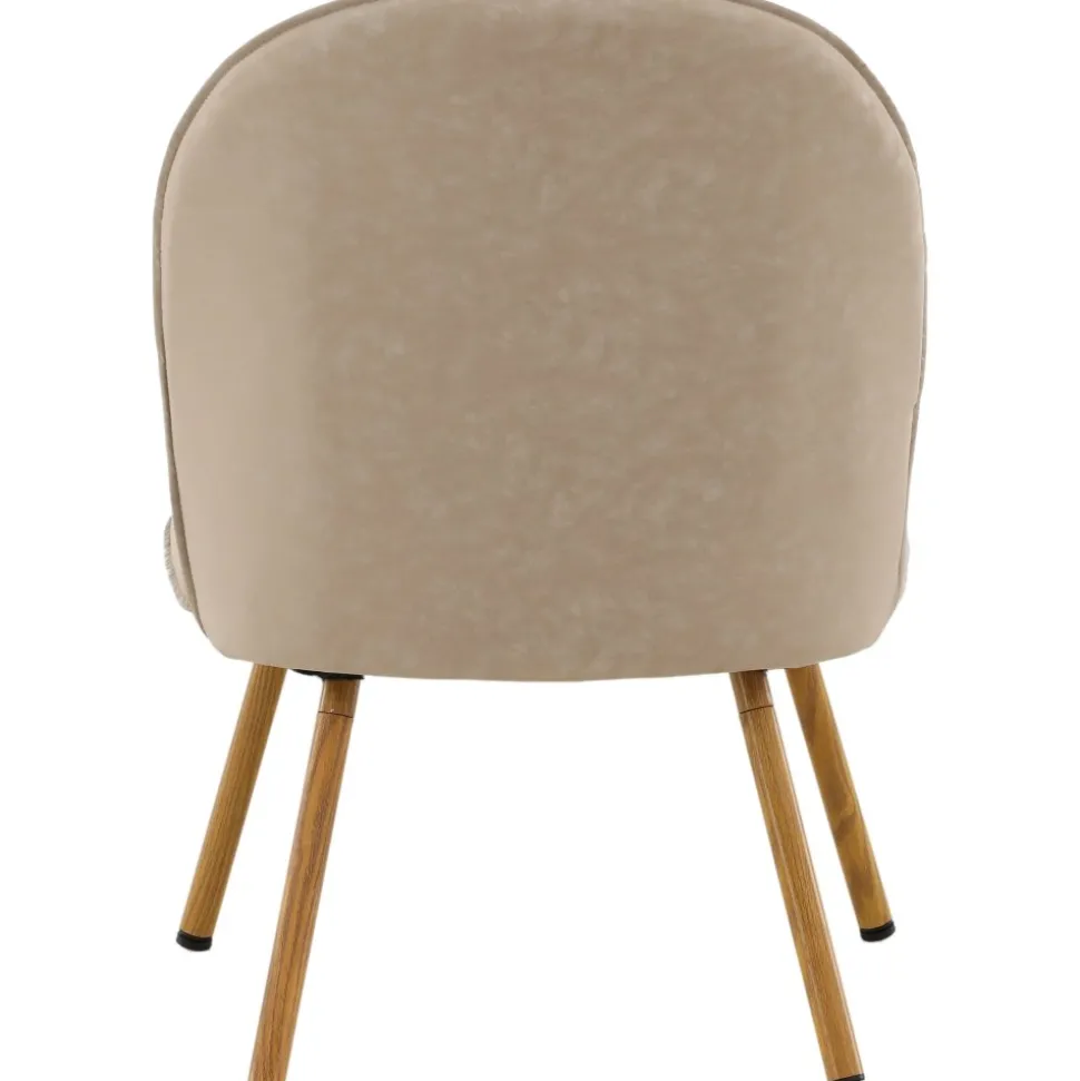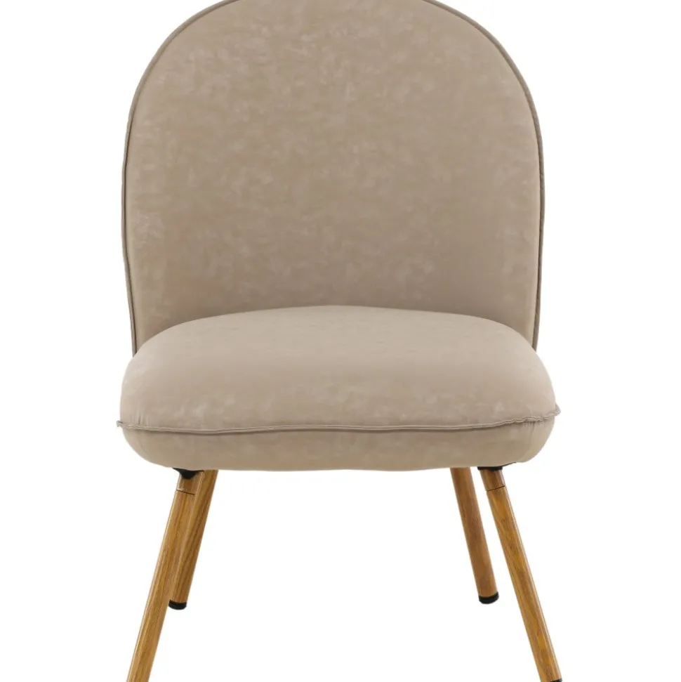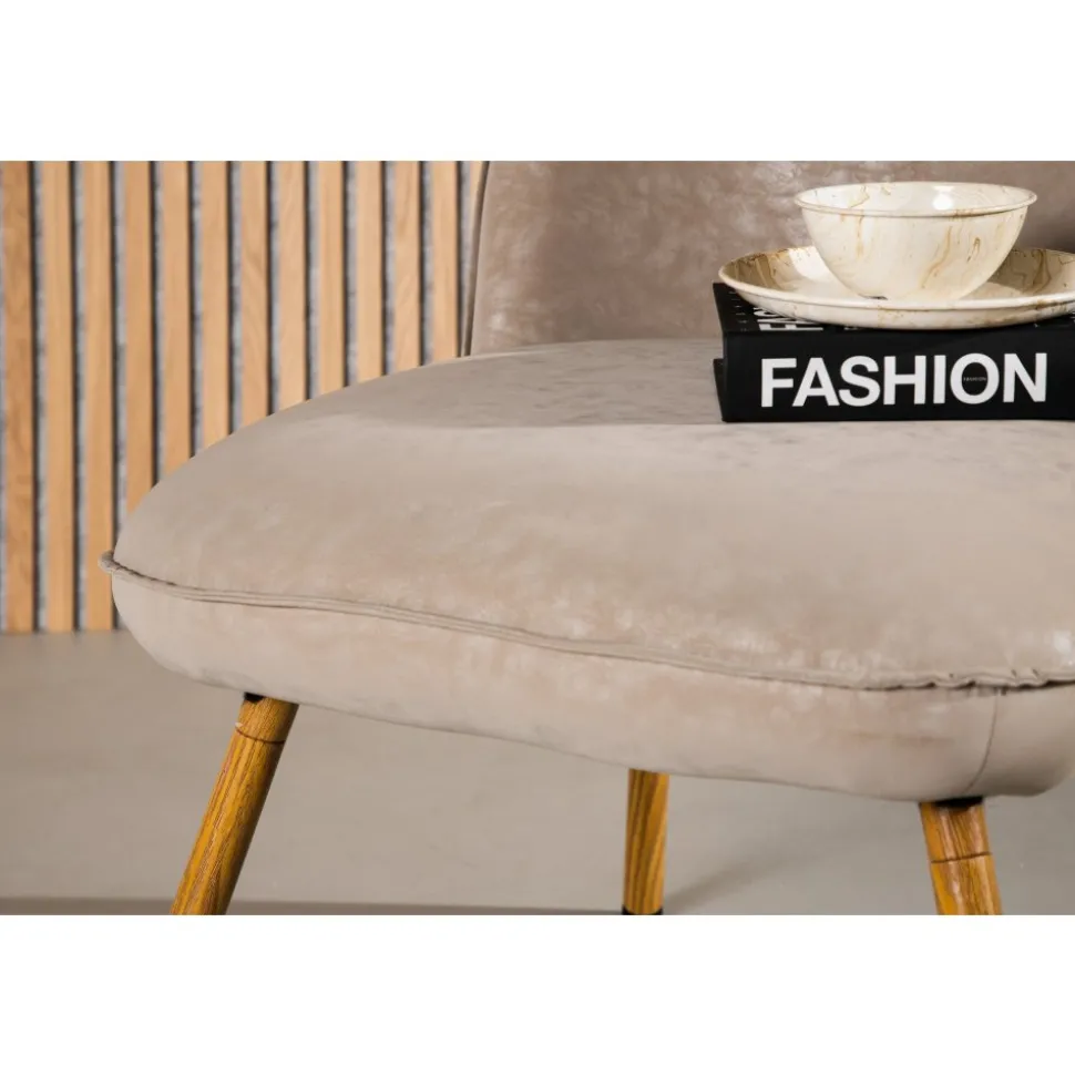 Den här stilsäkra fåtöljen har en trendsäker kulör med en mjuk sits i beige konstläder och utsvängda ben i ek. Den skandinaviska designen är genomtänkt med en rundad utformning och bra balans mellan stil och komfort. Möblera intill soffgruppen eller solitär i läshörnan! Levereras omonterad.