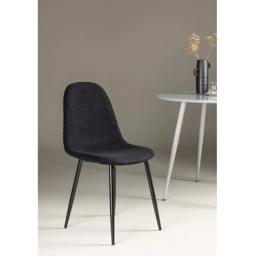 Upptäck Polar matstolen – den perfekta kombinationen av modern elegans och enkelhet för ditt matsalsarrangemang. Polar är det ultimata valet för att ge din matsal en stilfull och samtida touch. Stolens djupa svarta färg och material av polyester teddy ger en exklusiv känsla och erbjuder en bekväm sittupplevelse för alla dina middagar och sammankomster. Dess moderna design och rena linjer ger en tidlös estetik som kompletterar alla inredningsstilar. Polar matstolens ben är tillverkade av svart stål, vilket ger en stadig och robust konstruktion samtidigt som det bidrar till dess eleganta utseende. Med dess enkelhet och mångsidighet kommer Polar att vara ett välkommet tillskott till ditt hem. Ge din matsal en uppgradering med Polar matstolen – en bekväm, modern och stilfull som är perfekt för daglig användning och speciella tillfällen.