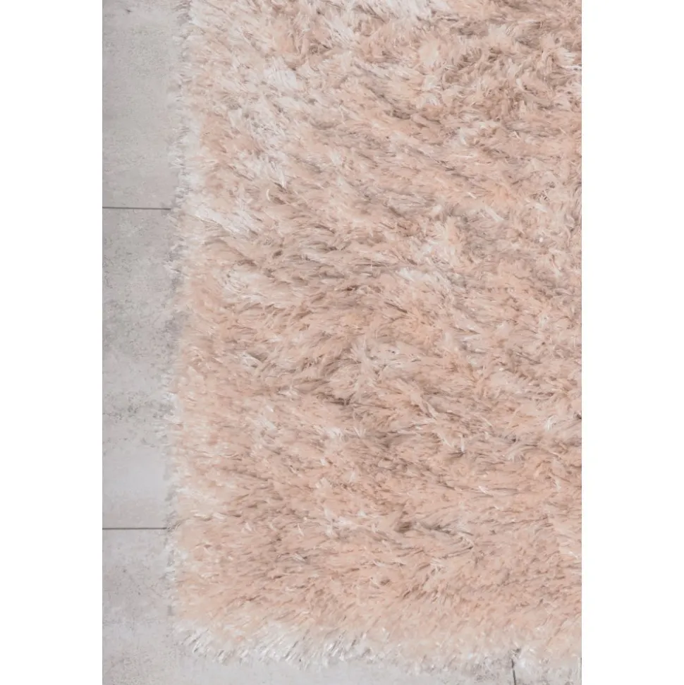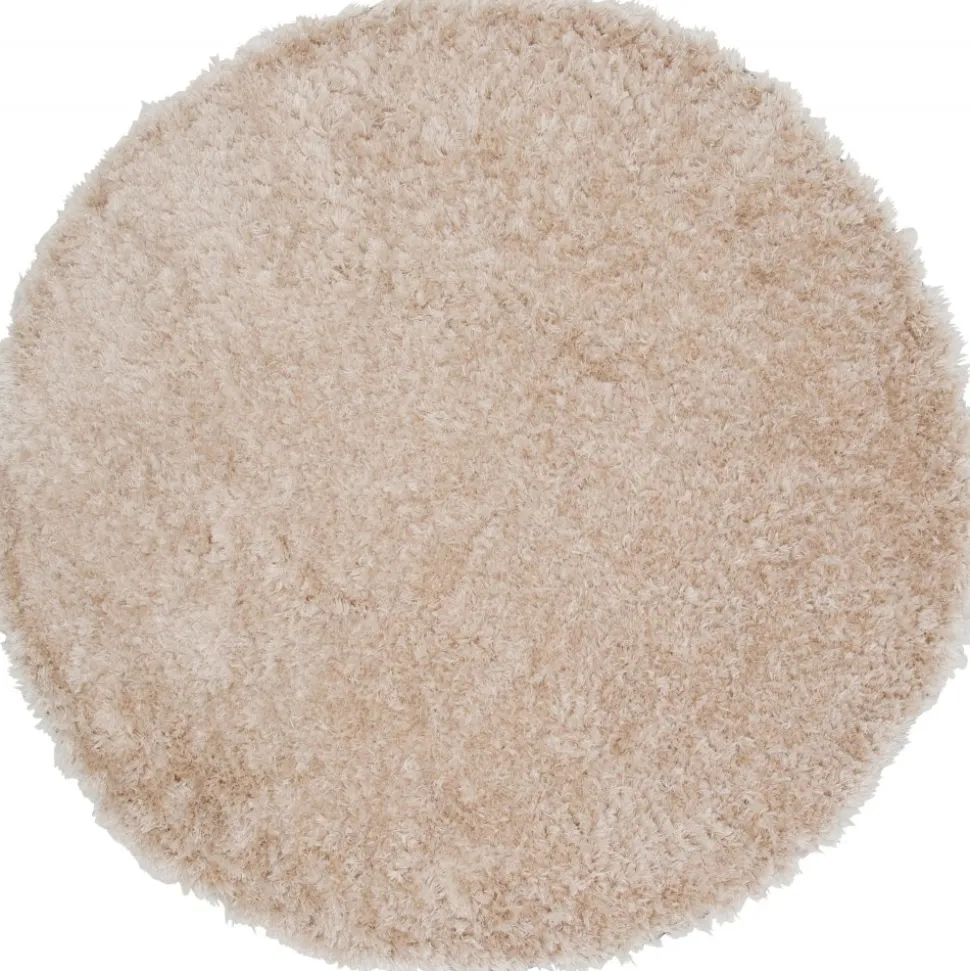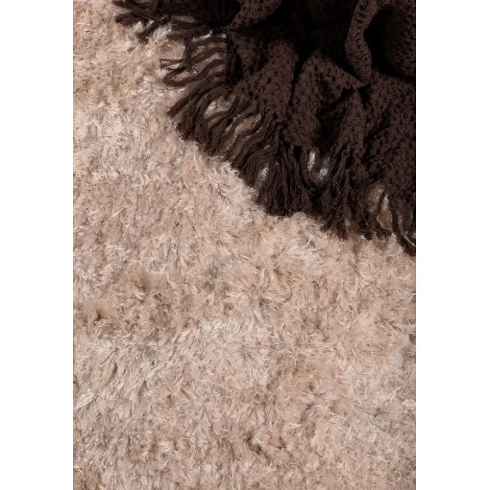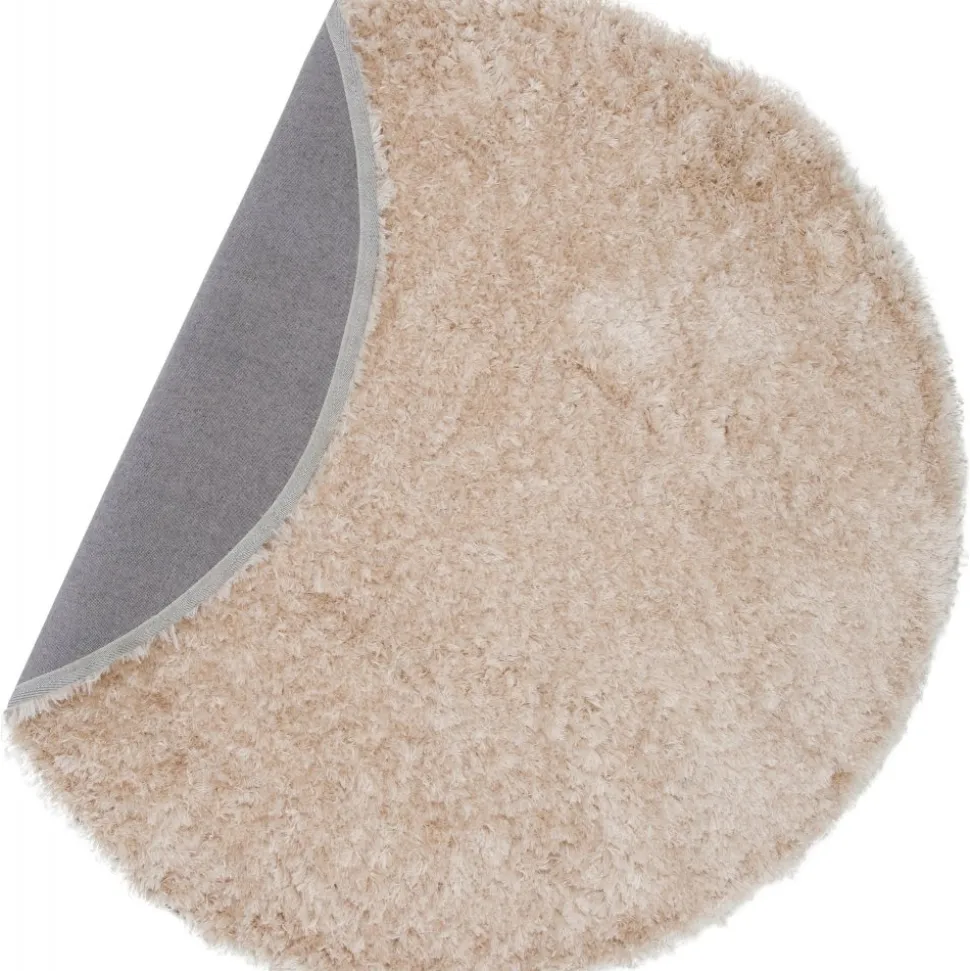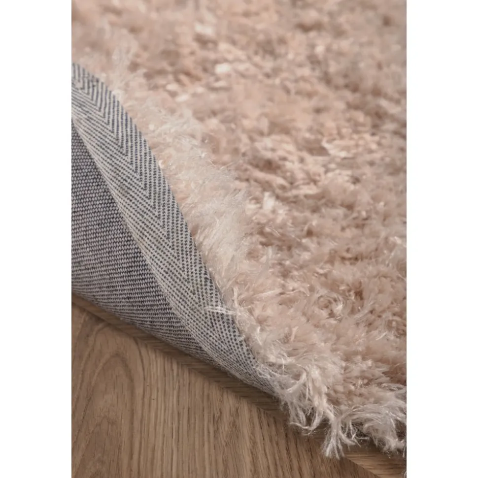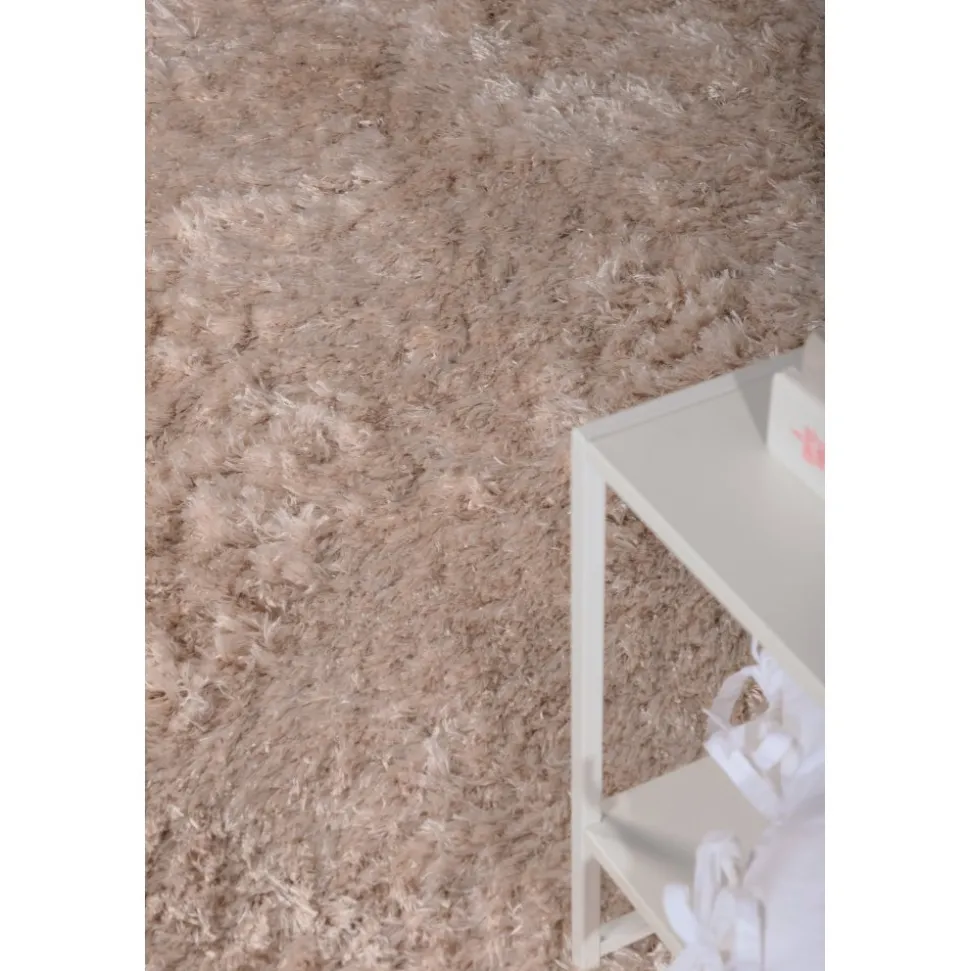 Fluffig champagnefärgad polyestermatta med silkeslen känsla. Slätvävd med hög och tät lugg.