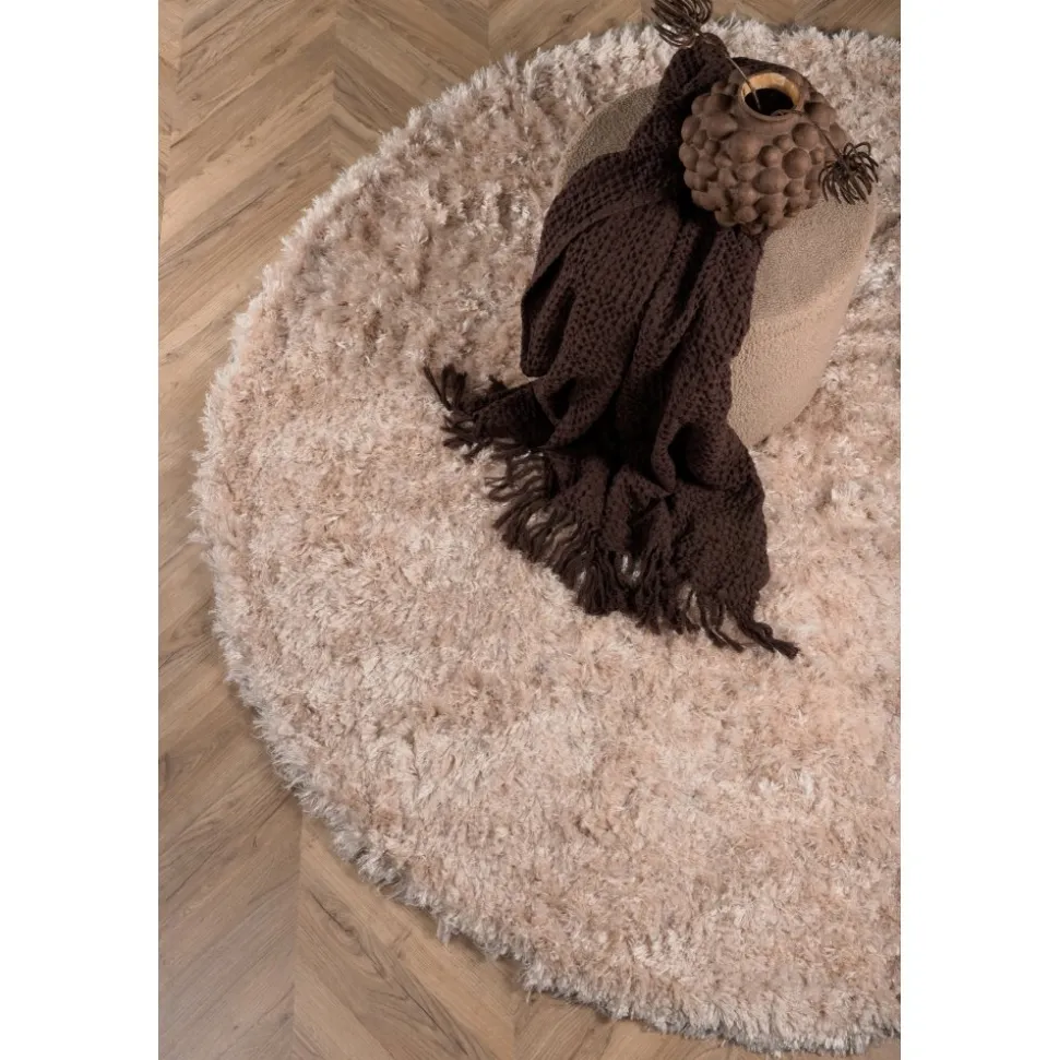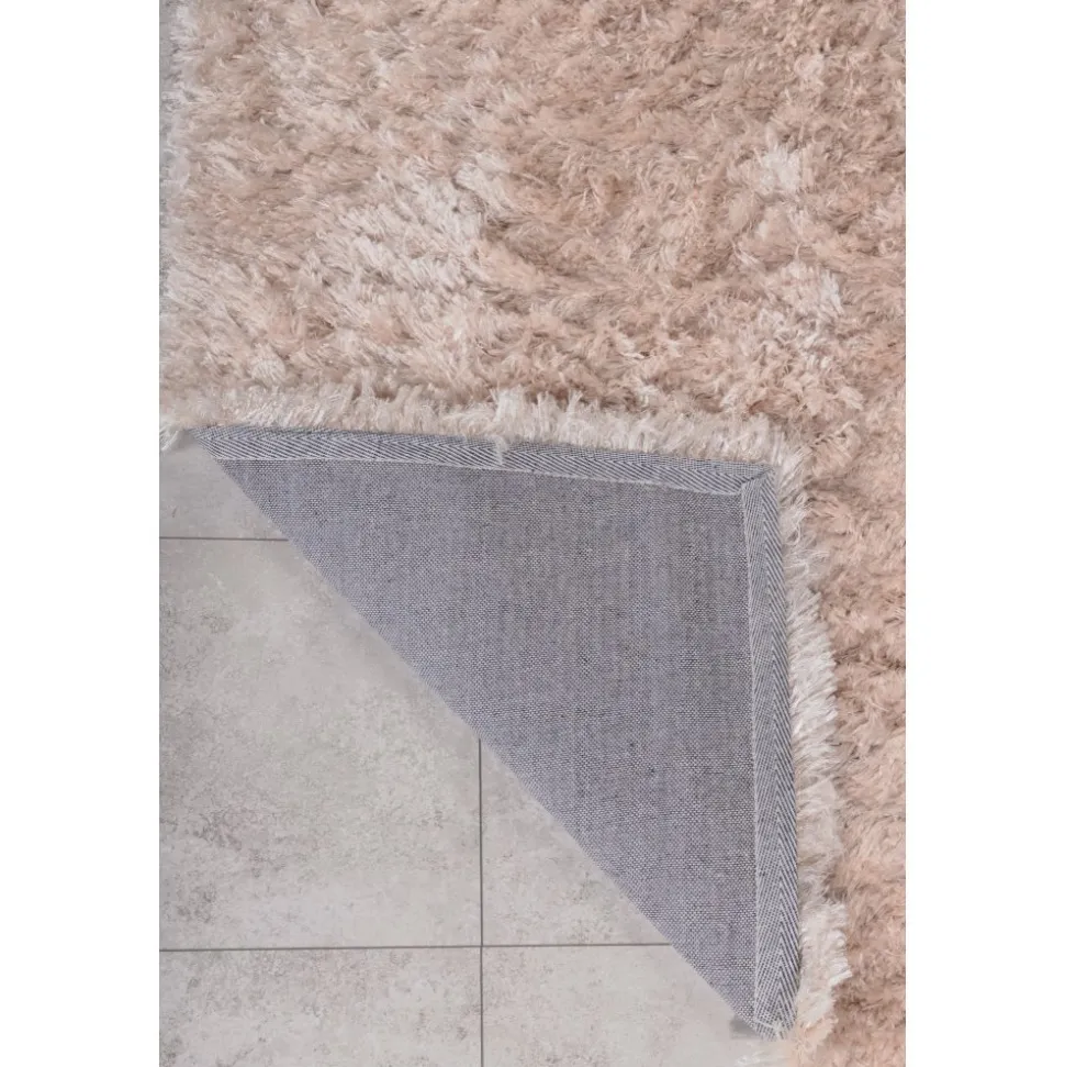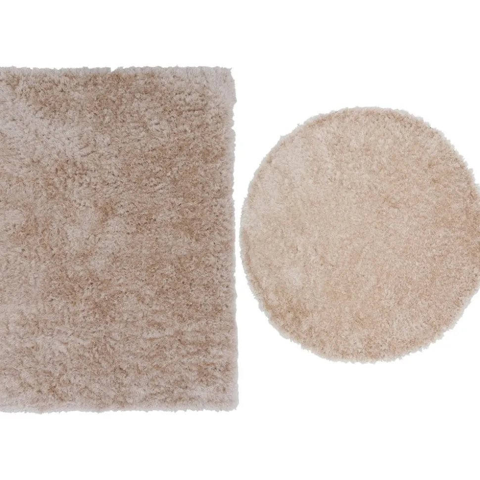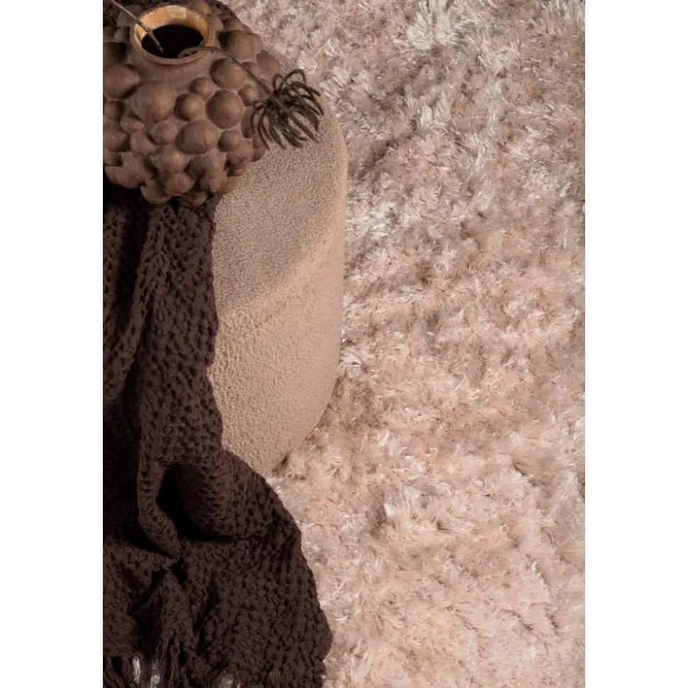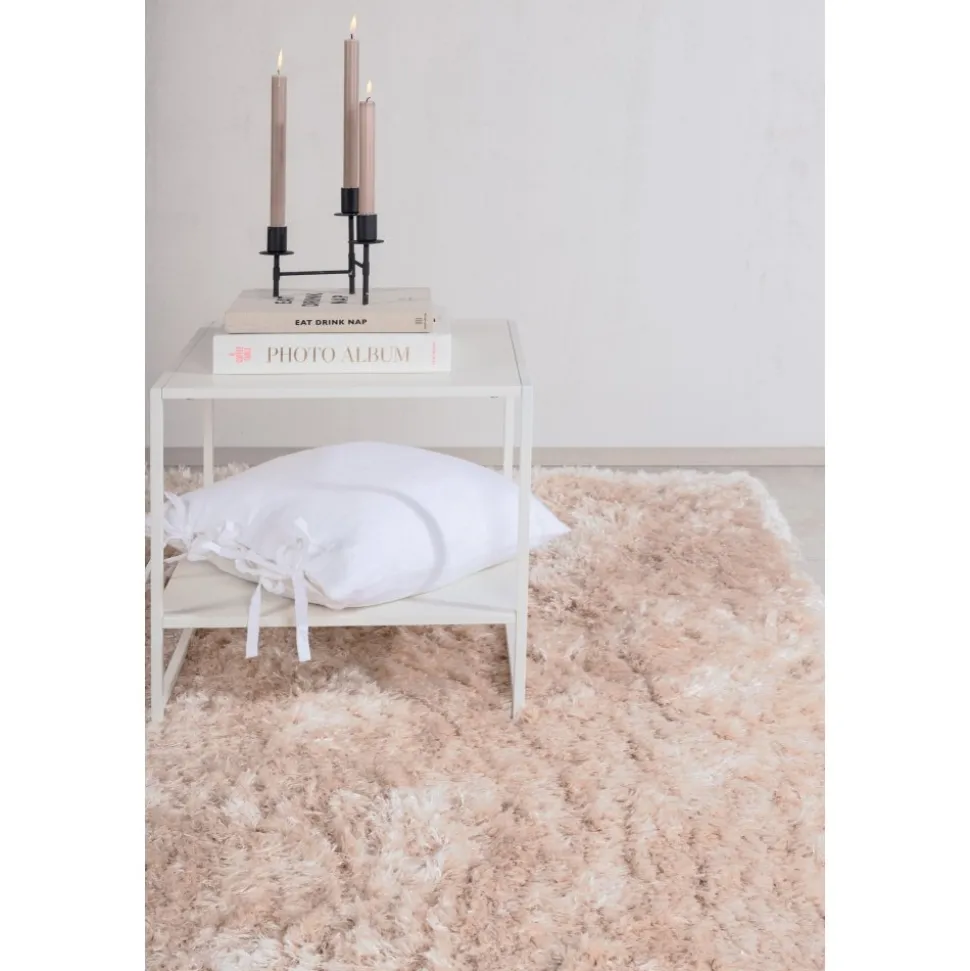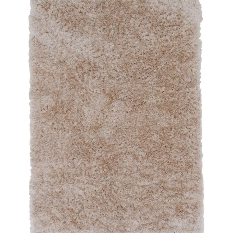 Fluffig champagnefärgad polyestermatta med silkeslen känsla. Slätvävd med hög och tät lugg.
