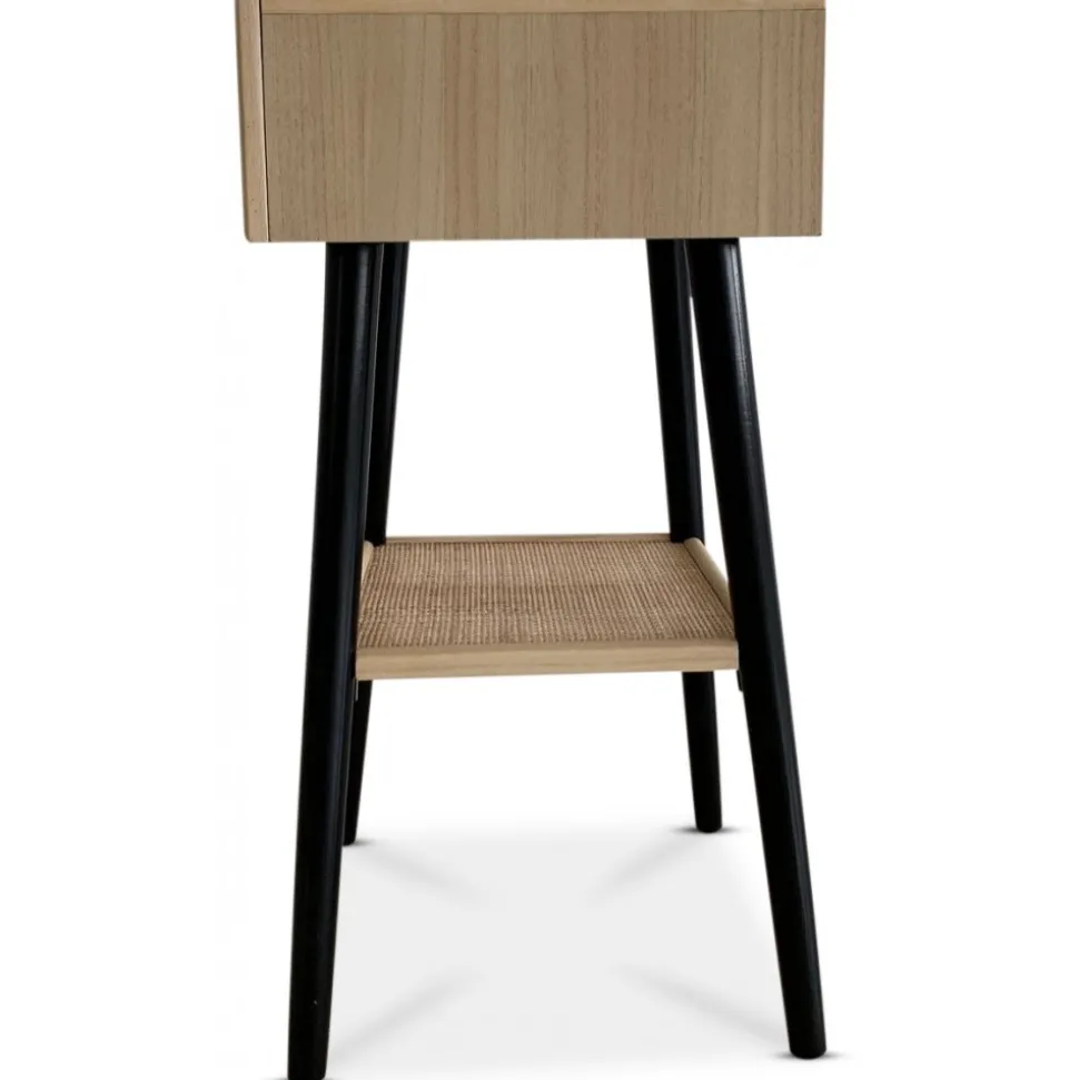 React är en serie med förvaring som är handbyggda för att komma så nära naturen som möjligt. Varje möbel är unik och tillverkad efter traditionellt snickarhantverk. Stomme i behandlat trä med naturrotting. Lådan är försedda med eleganta svarta handtag i metall.