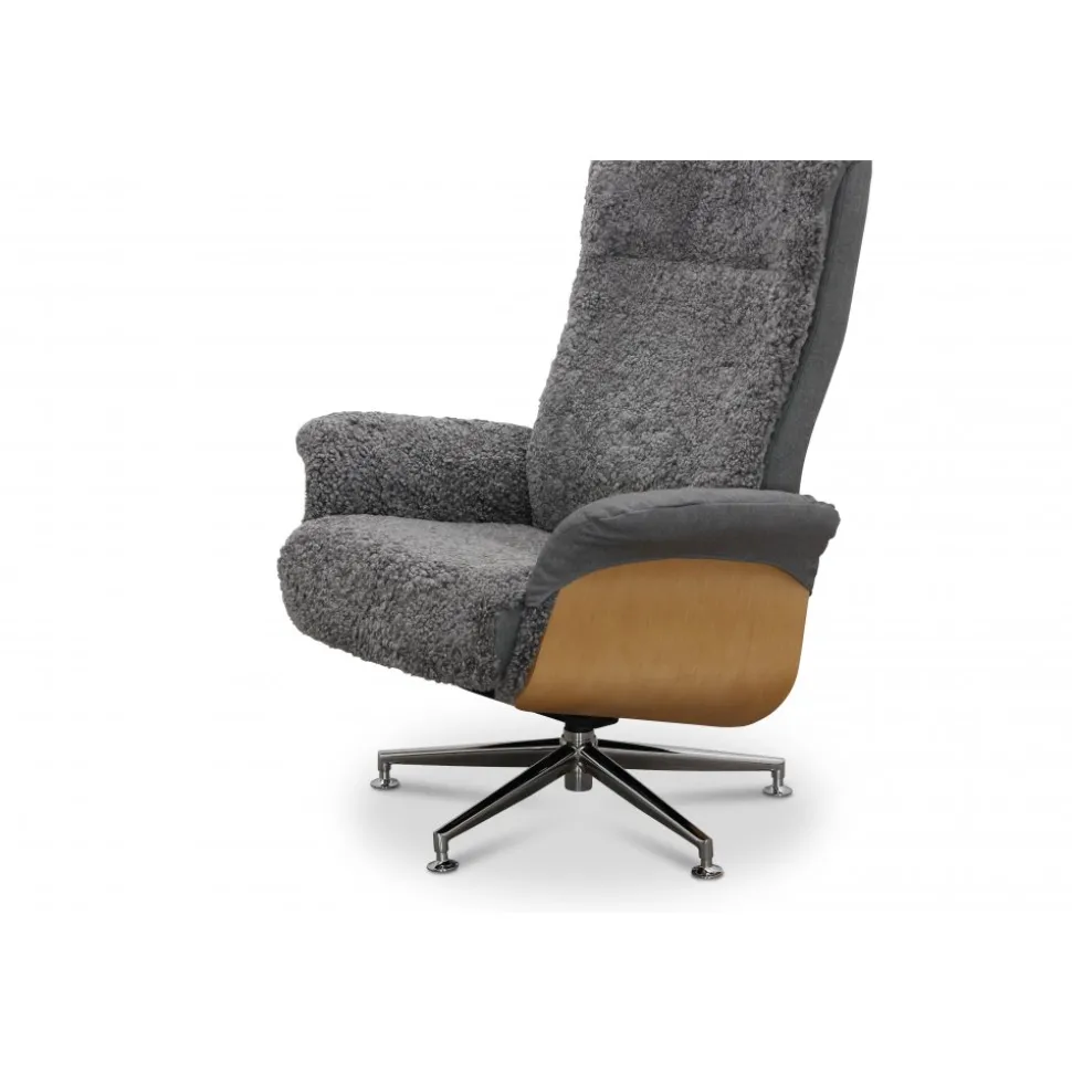 - Reclinerfåtölj med fotpall i äkta fårskinn ek/grafitgrå – Ulla