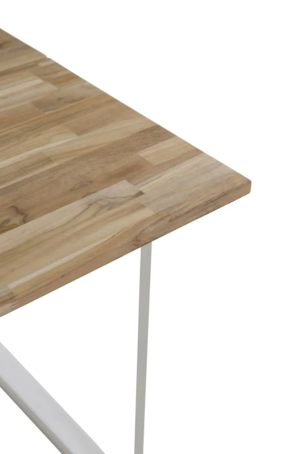 Matbord med en vintage-look, bordsskiva i teak och underrede i vit metall.