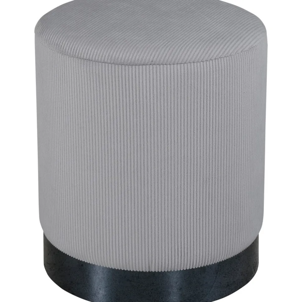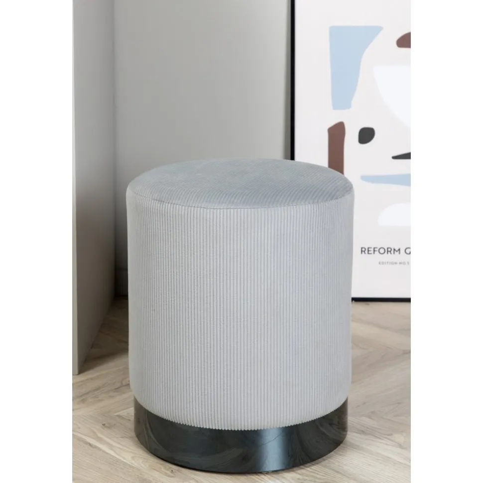 Sittpuff av trä, klädd med polyestertyg.