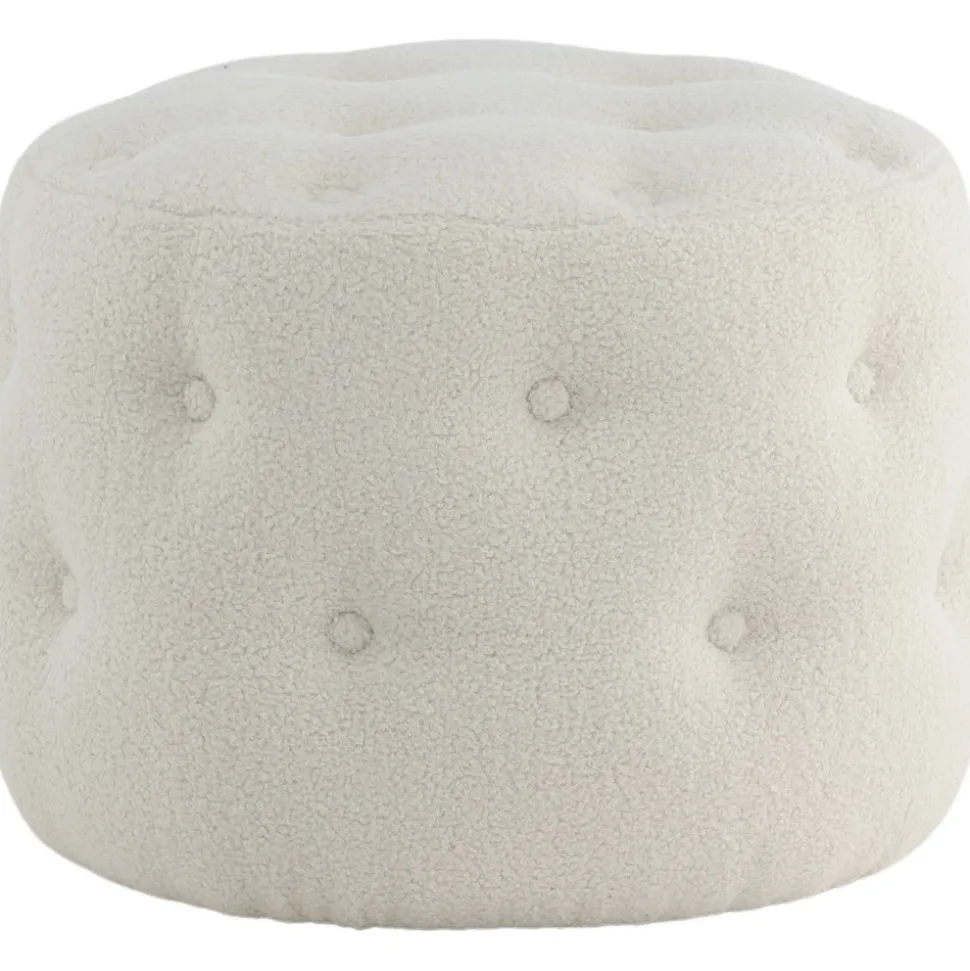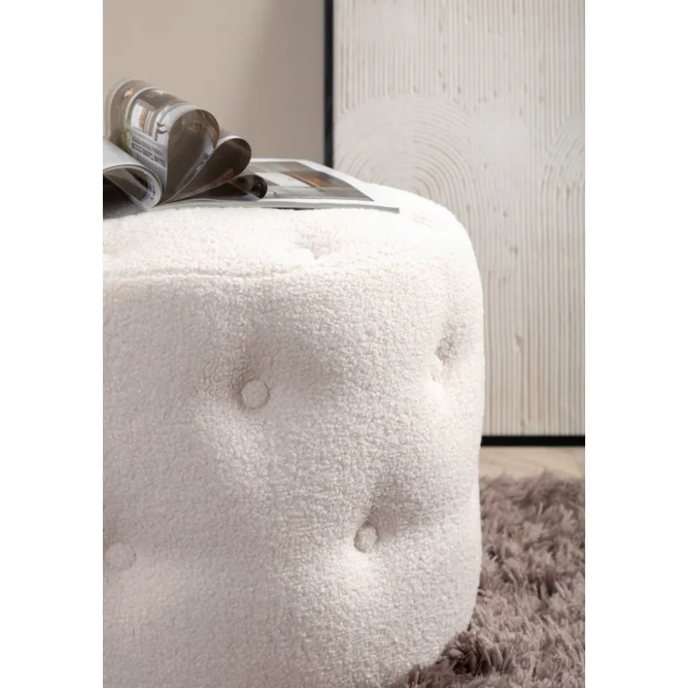Sittpuff av trä, klädd med polyestertyg.