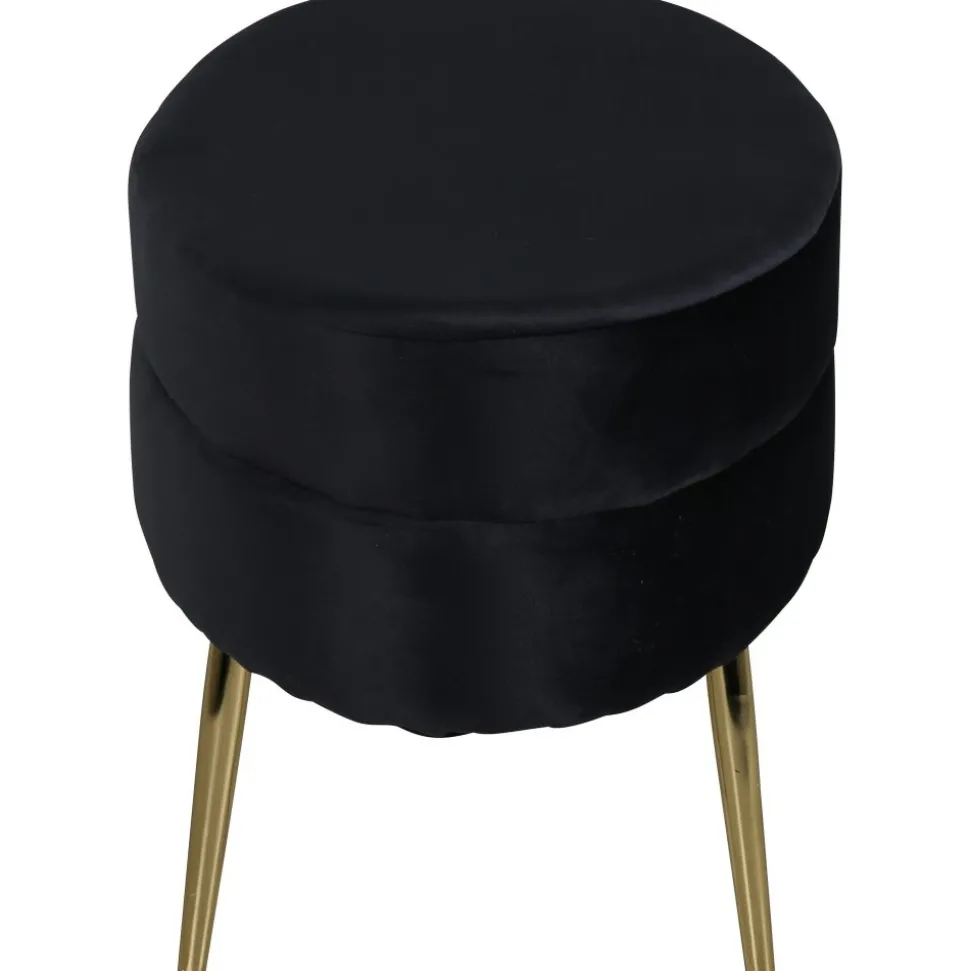 Sittpuff av trä och stål, klädd med polyestertyg.