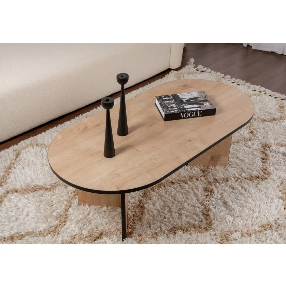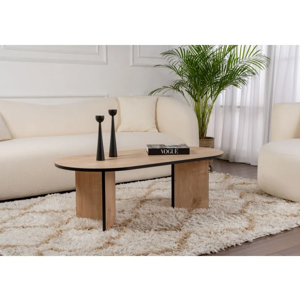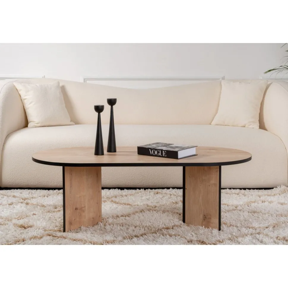 Soffbord av melaminbelagd spånskiva.