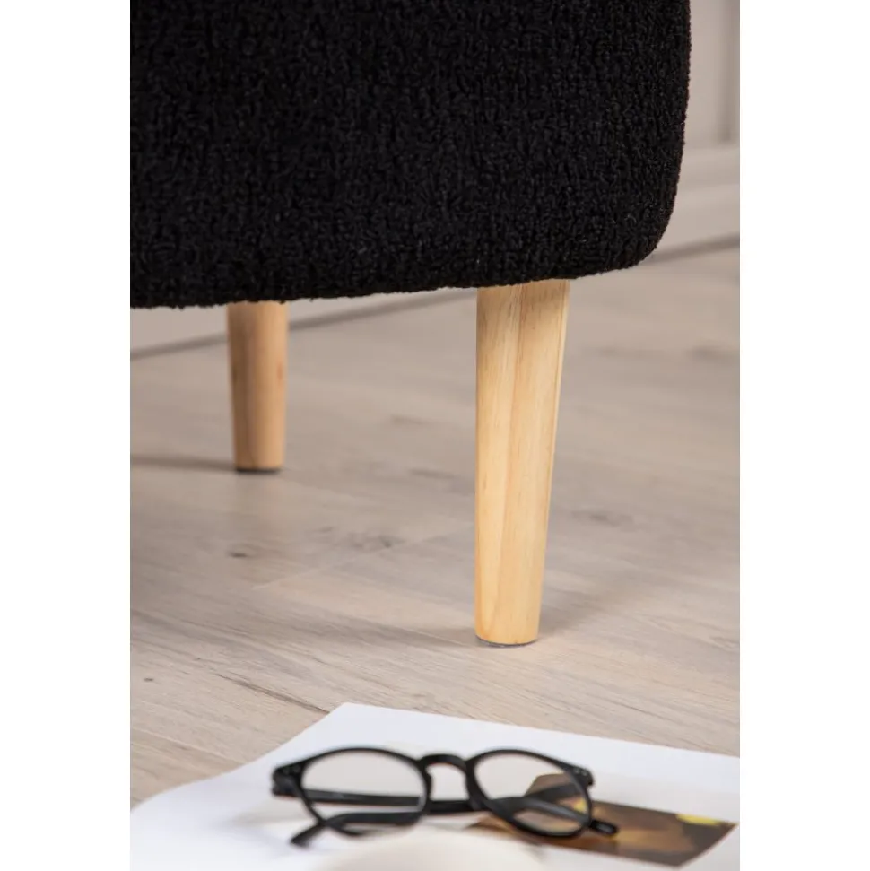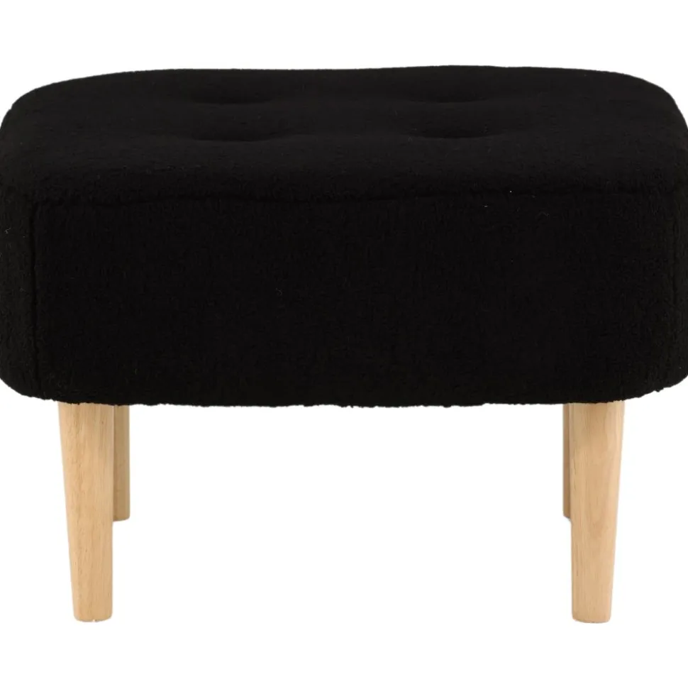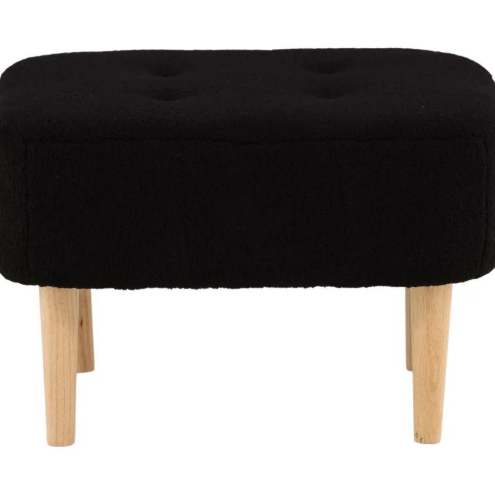 En trendig inredningsdröm som lyfter den stilsäkra och inbjudande känslan till rummet! Den här sittpuffen från serien Salina imponerar med sin lyxiga look och blir till en snygg inredningsdetalj. Tillverkad i sotig svart kulör av gosigt fleecetyg, trä och metall med djuphäftade knappar i tyget som blir till en läcker detalj. Puffen har en låg design med träfärgade ben som bidrar till en luftigare atmosfär och möjliggör enkel dammsugning.