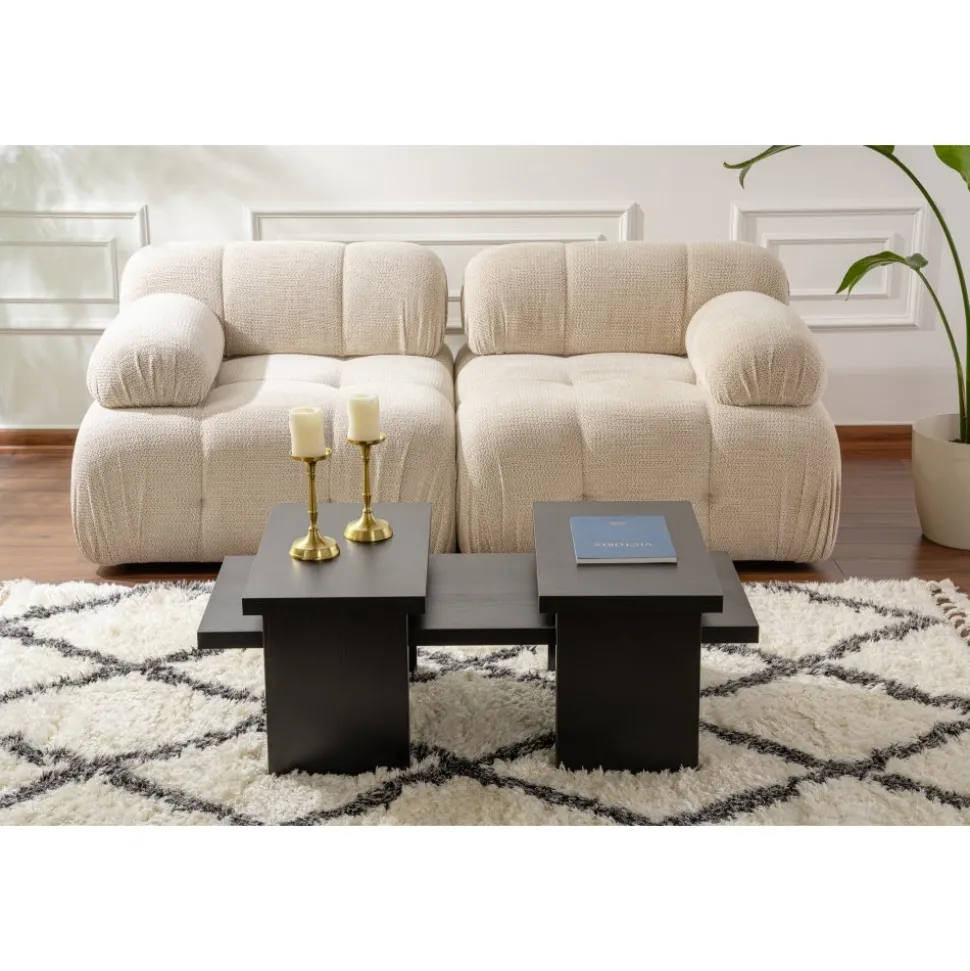 Soffbord av melaminbelagd spånskiva.