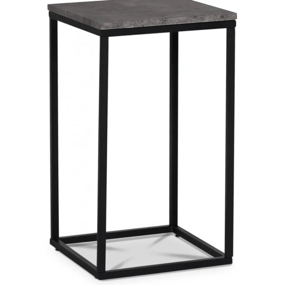 Shanghai siodobord med toppskiva i cementimitation (MDF) med underrede i svartlackad metall. Ett stiligt och prisvärt med tålig och slitstark yta.