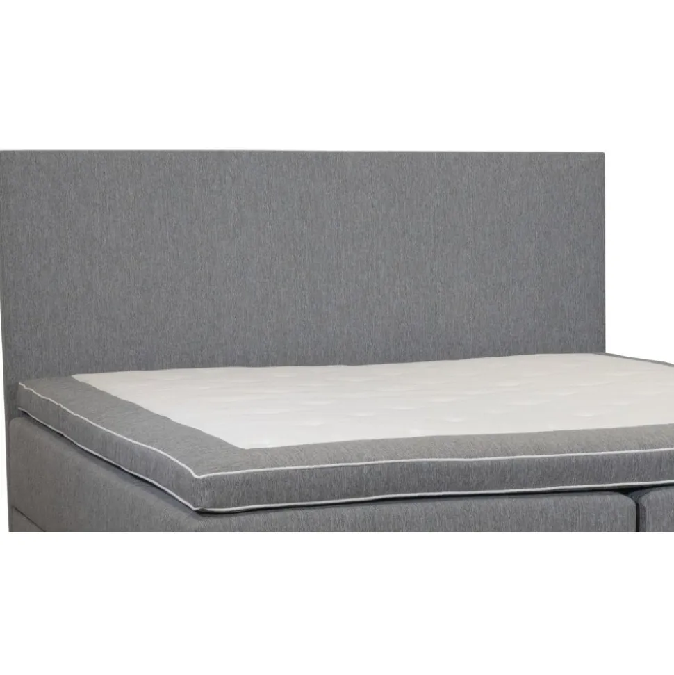 Sänggavel i ett neutralt grått tyg. Sänggaveln är 130 cm hög och 180 cm bred. Djupet är 7 cm. En ger ett ombonat och mjukt intryck i ett sovrum. Denna sänggavel kläms mellan väggen och kontinentalsängen vilket innebär att man behöver inte gör någon åverkan på varken vägg eller säng.