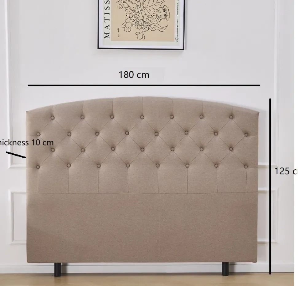 Capetown välvd 180 cm bred. Totalhöjd: 125 cm inklusive ben. Beige tyg.