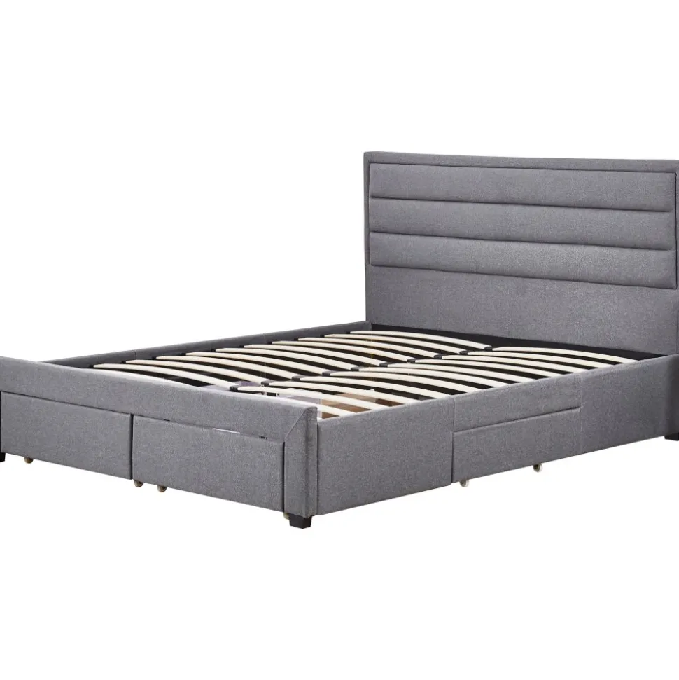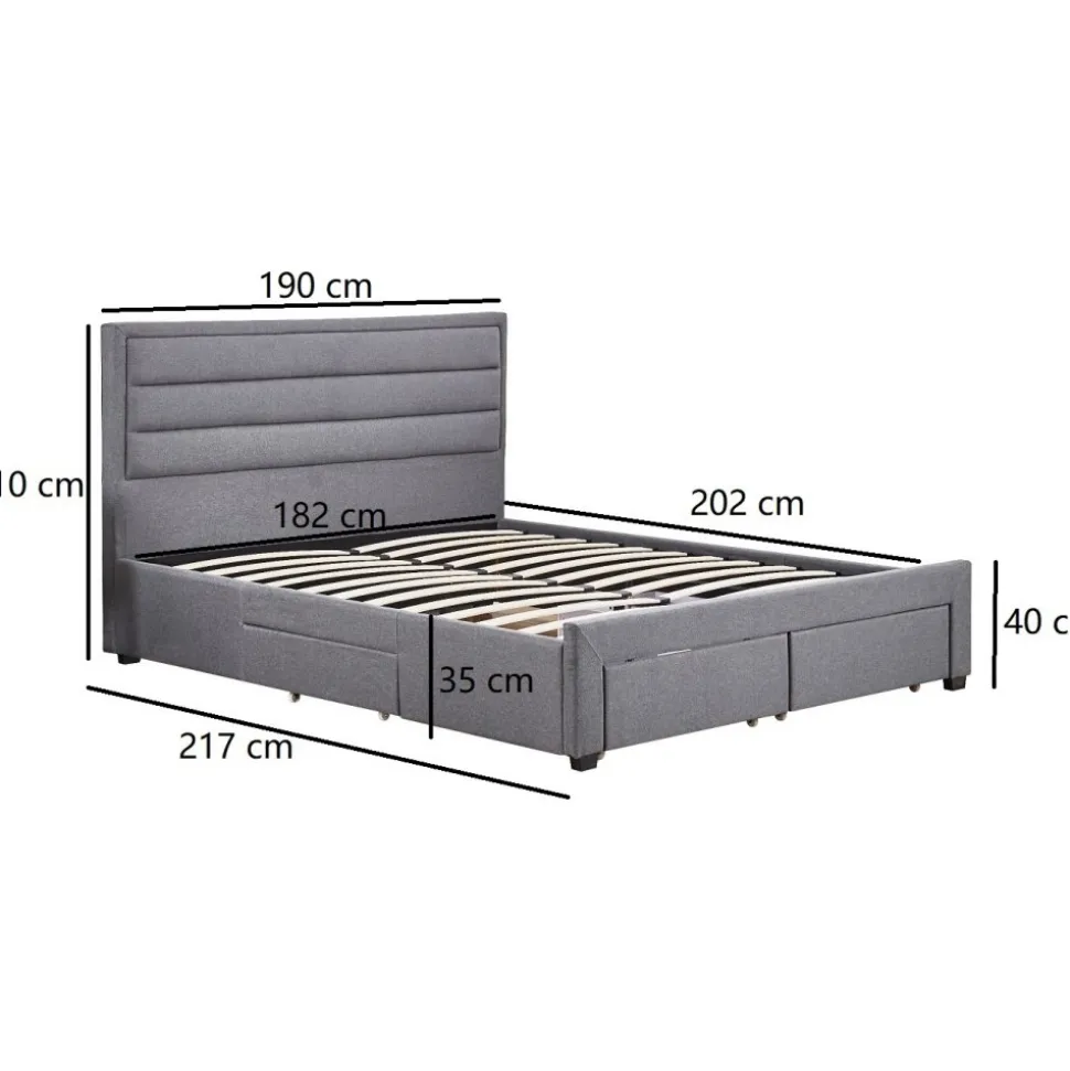 - Sängram med förvaring inklusive sänggavel 180 x 200 cm – Grå