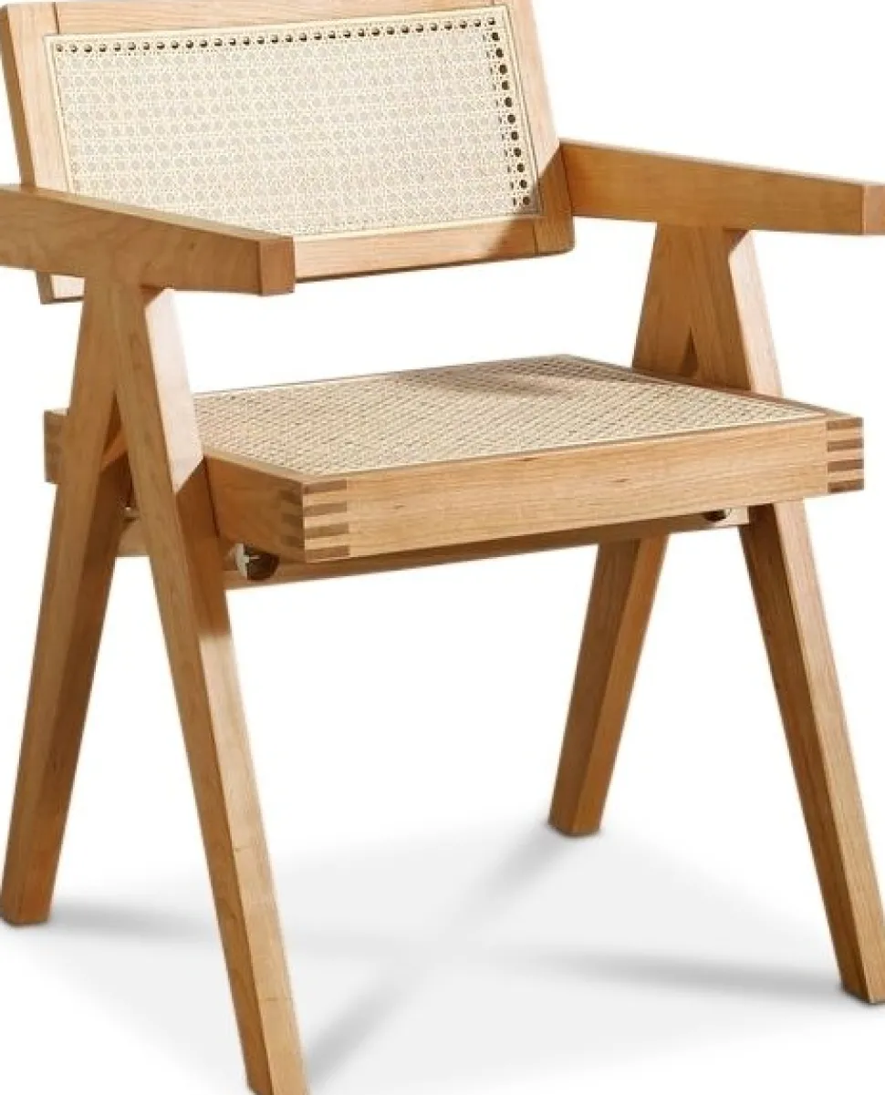 Robust karmstol som finns att välja i ek eller whitewash. Ramen är av ek, sits- och rygg klädd med rotting.