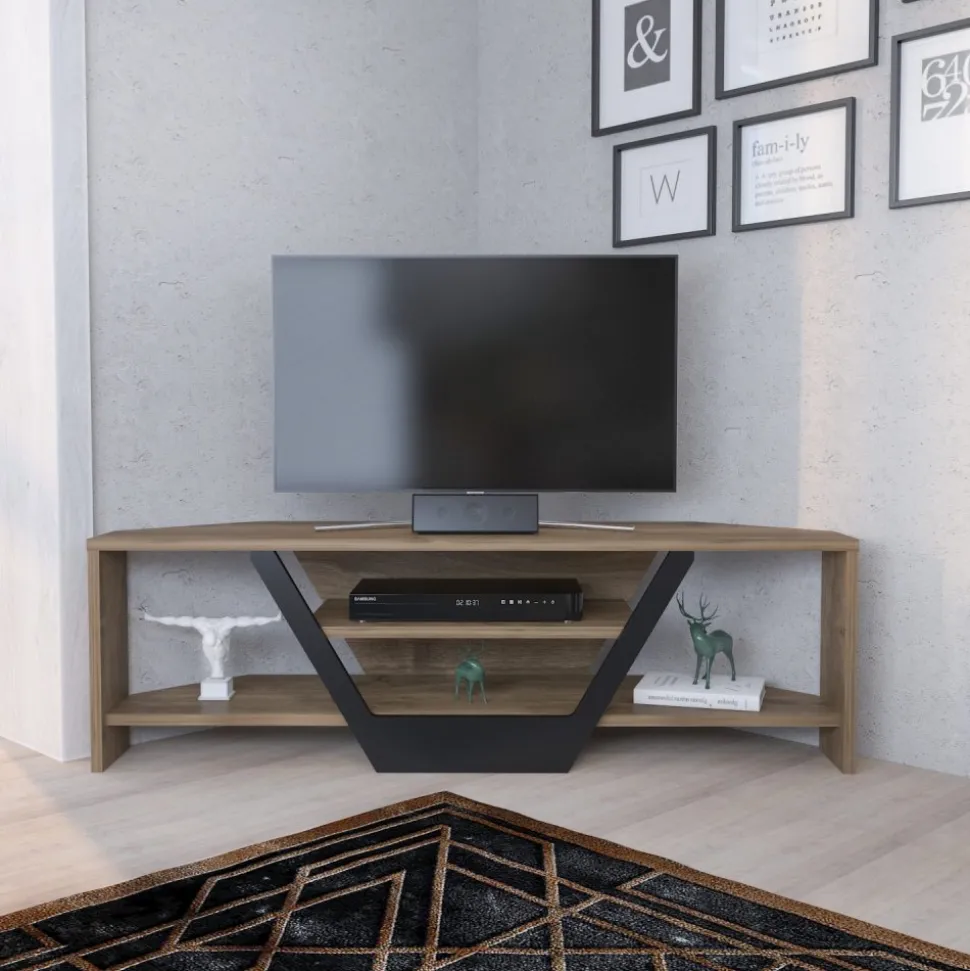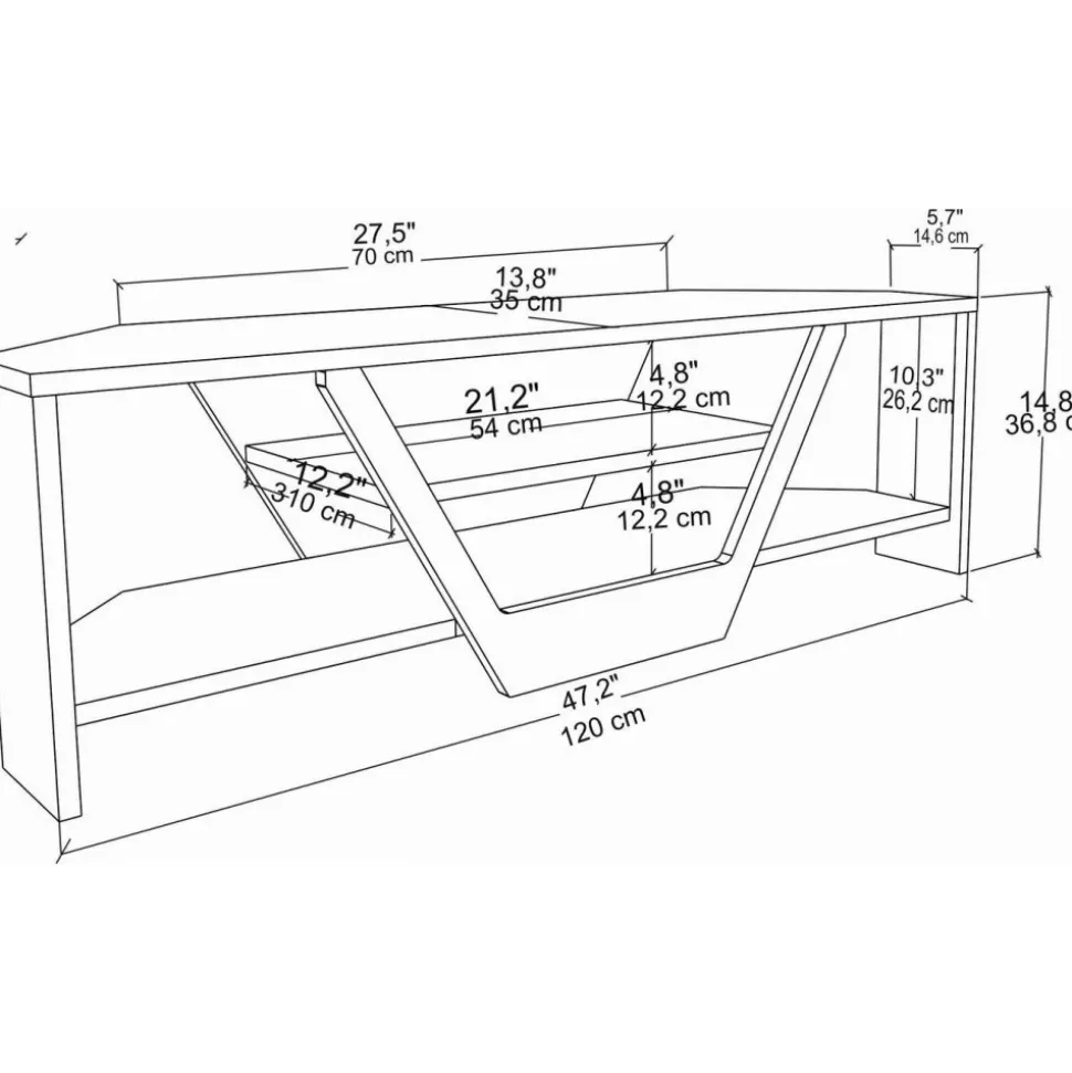Mediabänk av melaminbelagd spånskiva.