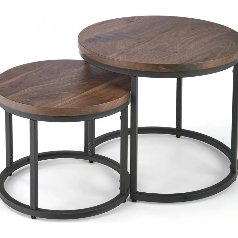 Satsbord bestående av två eleganta är en perfekt kombination av stil och funktion. Med sin vackra valnötsfinish ger borden en varm och inbjudande känsla, medan den svarta detaljen skapar en modern kontrast som gör att de passar in i olika inredningsstilar. Dessa är inte bara dekorativa utan också praktiska. De kan användas tillsammans eller separat, vilket gör dem mycket mångsidiga. De mindre borden fungerar utmärkt som sidobord, medan det större bordet kan användas som ett centralt soffbord. Deras kompakta storlek gör dem lättplacerade även i mindre utrymmen.