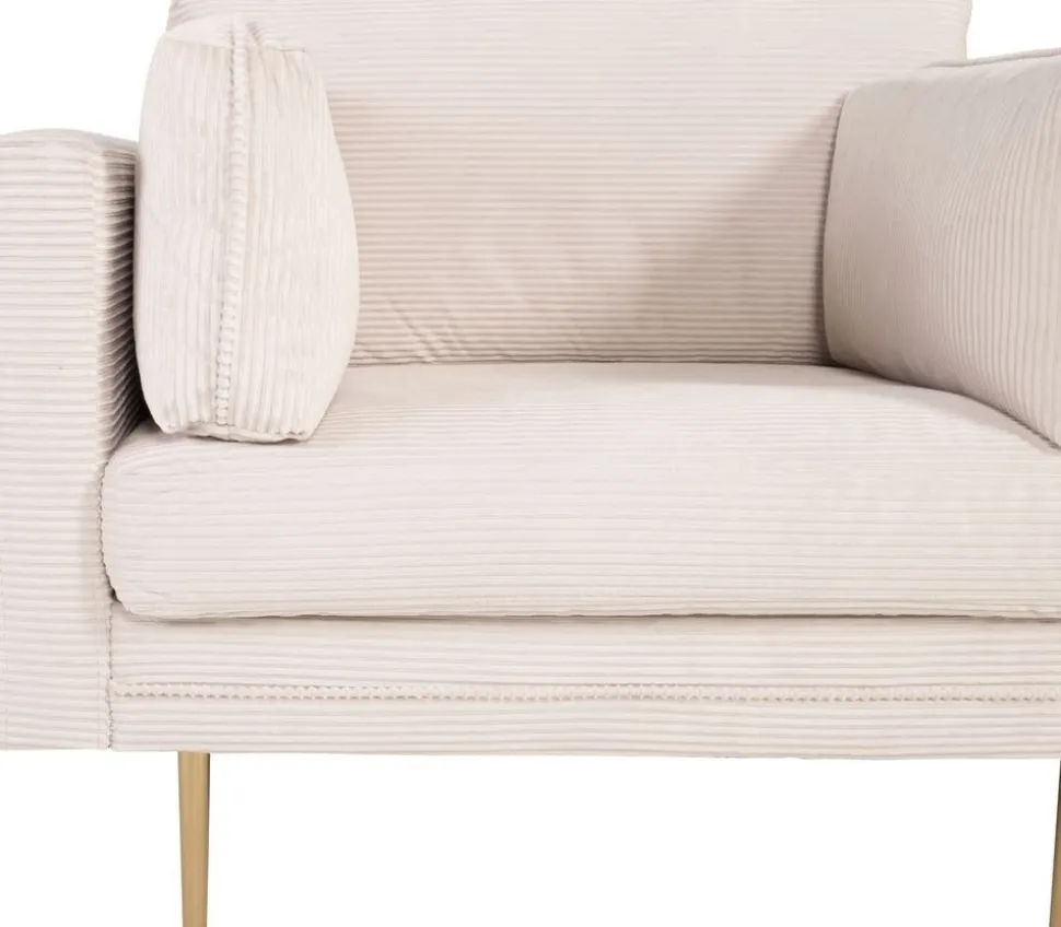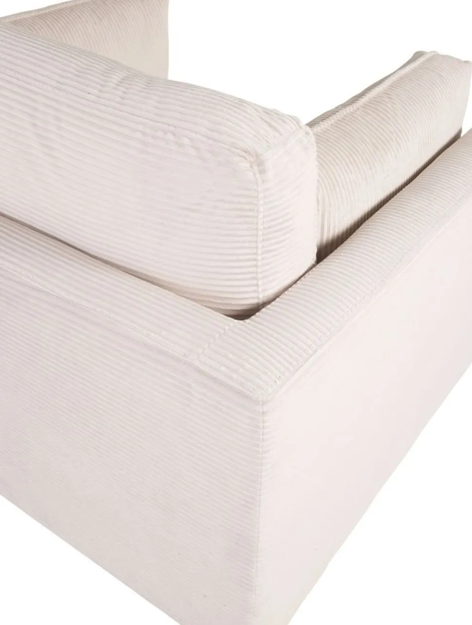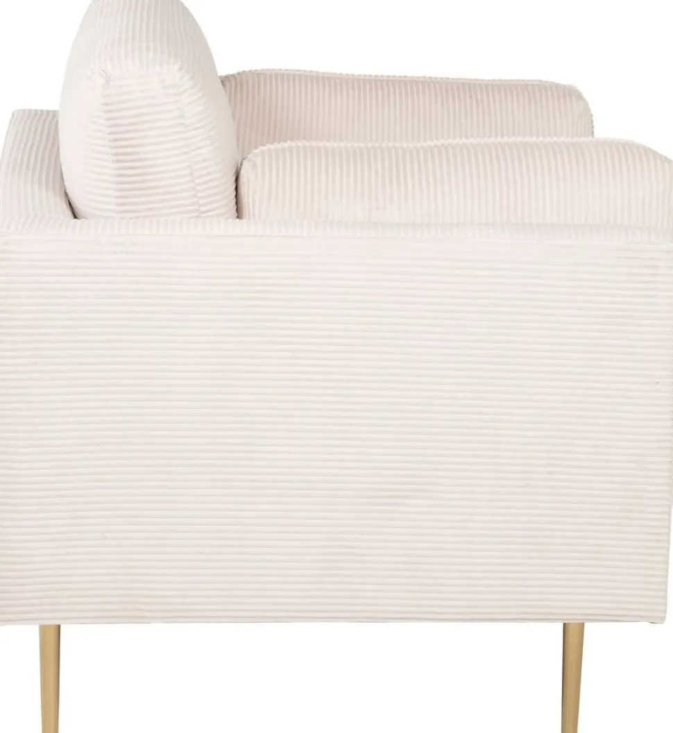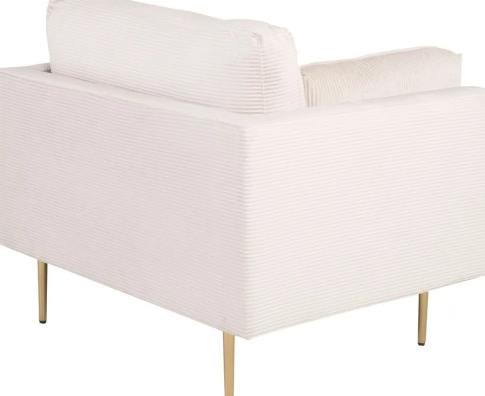 Fåtölj klädd med ett ljusgrått manchestertygg i 100% polyester, stomme i massivt trä.