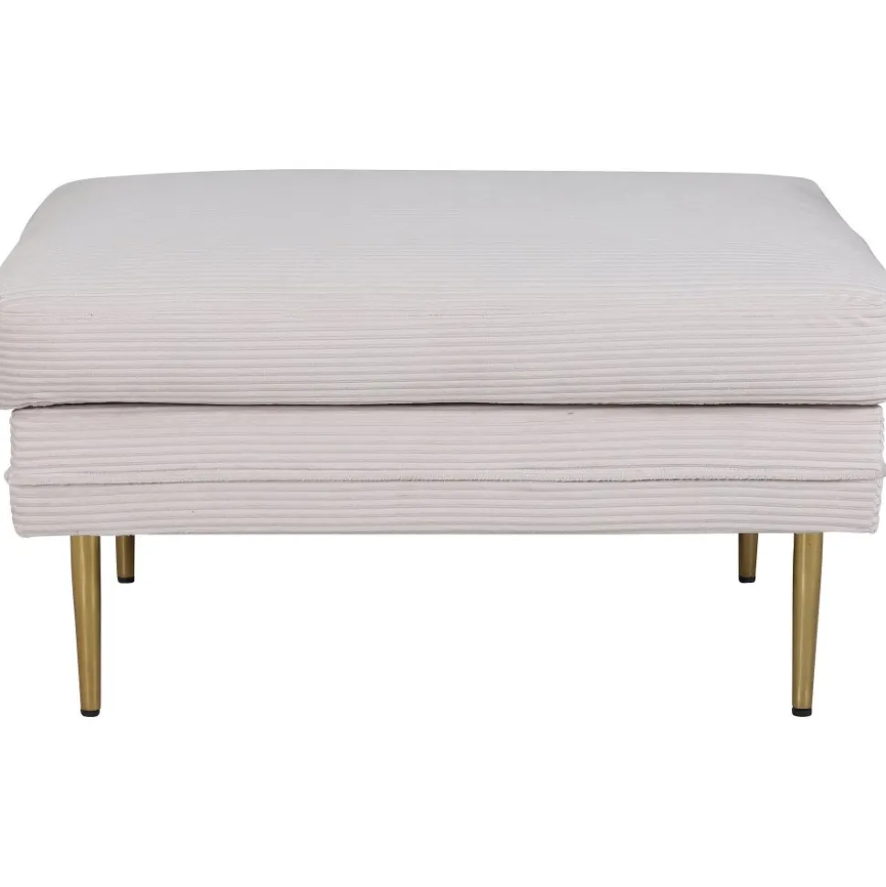 Sittpuff av trä och metall, klädd med polyestertyg.