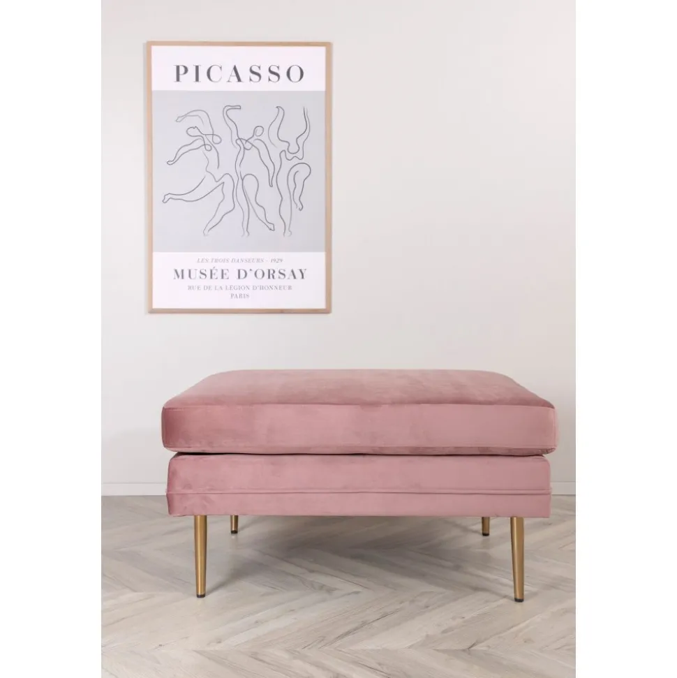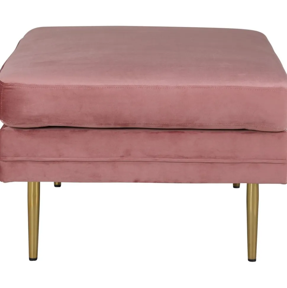 Sittpuff av trä och metall, klädd med polyestertyg.