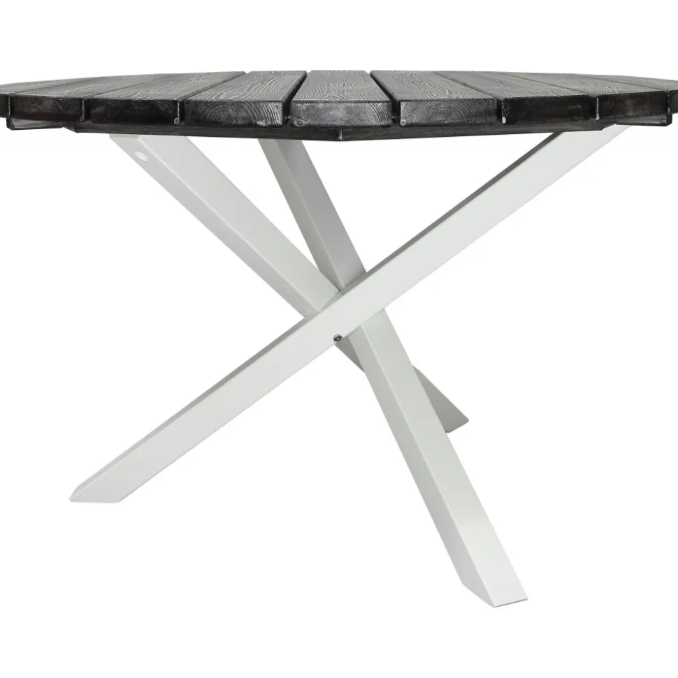 Robust och prydligt runt matbord med grålaserad toppskiva i furu. Bordet har ett vitt underrede med kryssben och bordsskiva i klassiskt utförande. Bordet har behandlats för att få den patina man förknippar med Shabby Chic. Eftersom detta arbete sker för hand får varje exemplar ett unikt utseende.