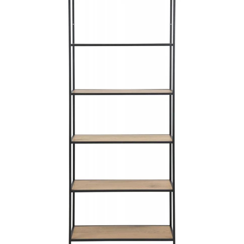 Bokhylla. Ram av pulverlackerad metall. Hyllplan av MDF och melamin.