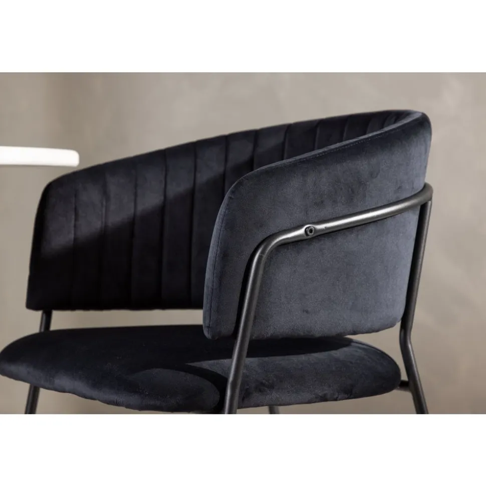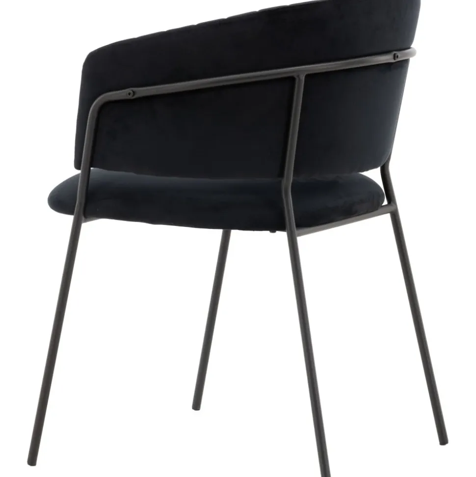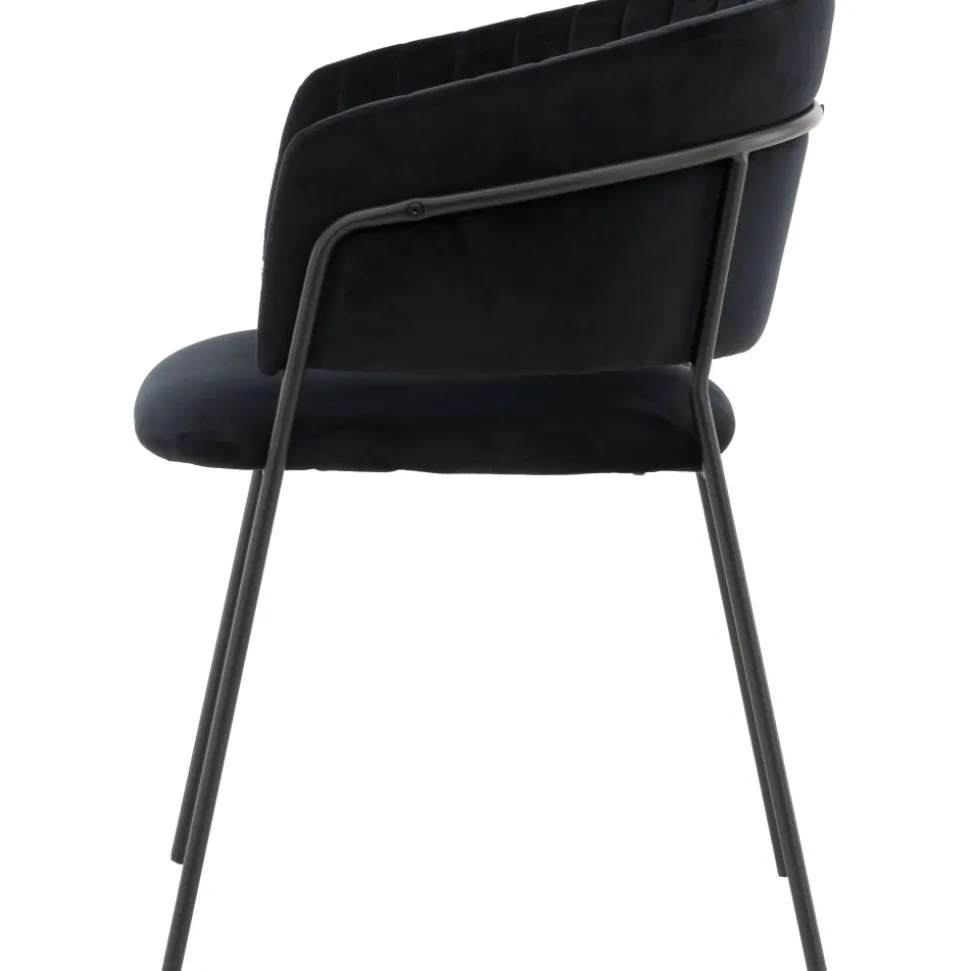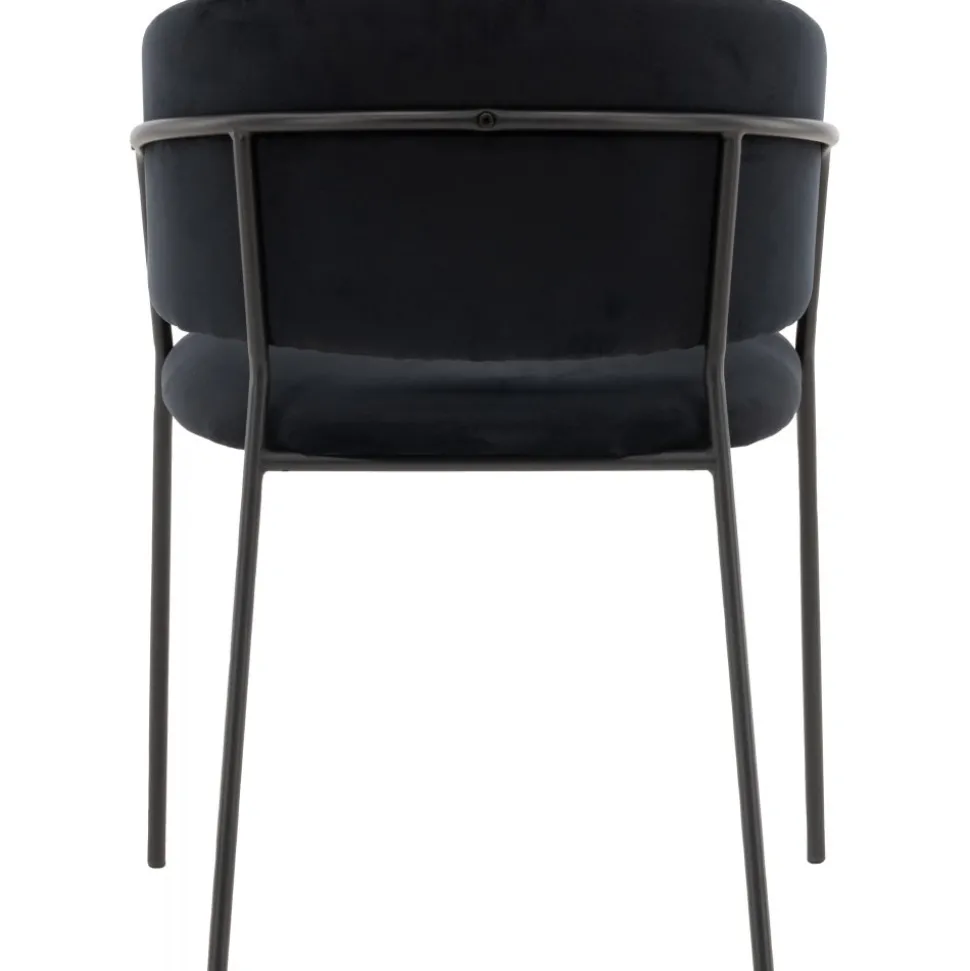 Möblera hemmets hjärta modernt, bekvämt och tidlöst med denna iögonfallande i kaxig svart kulör! Den här matstolen har en helklädd design med lätt rundad rygg och sits i sammetstyg med snygga dekorsömmar och stolsbenen är smala i svart stål. Skapa en inbjudande och trivsam look och njut av härliga måltider tillsammans!