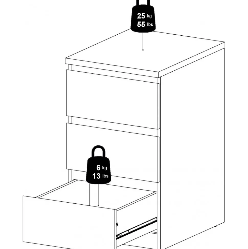 Byrå av trä med kantband av melamin och ABS-plast.