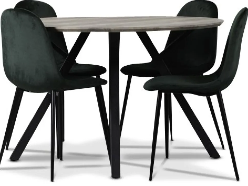 Smokey matgrupp, runt matbord med 4 st Carisma sammetsstolar – Mörkgrön: