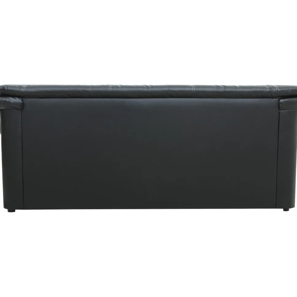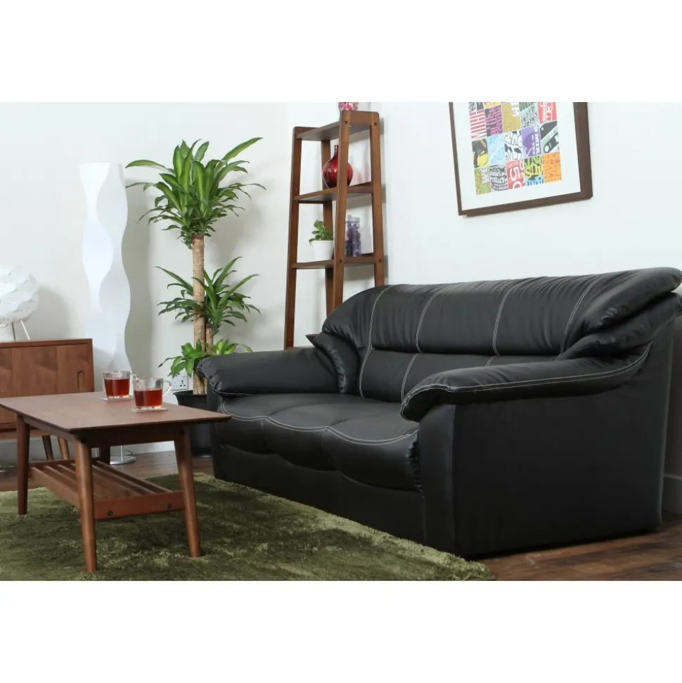 Dominic är klädd i svart konstläder, vilket ger både en stilren look och enkel rengöring. Den robusta stommen av eukalyptusträ säkerställer stabilitet och hållbarhet, medan plastbenen ger ett modernt intryck. Med stoppning av återanvänt skum bidrar soffan också till en hållbar livsstil. Den är perfekt för att skapa en bekväm och trendig sittplats i ditt hem.