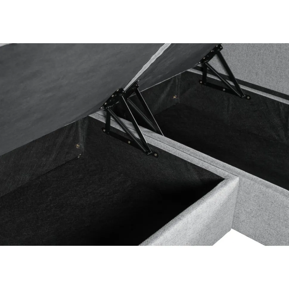 Divansoffa Cleo med praktisk förvaring i både divandele och sitsen. Detta gör divasoffan Cleo till den perfekt soffan i sommarstugan, gästrummet eller ungdomsrummet. Divansoffan är klädd med ett mjukt och tåligt grått tyg. Soffan rymmer tre sittplatser.