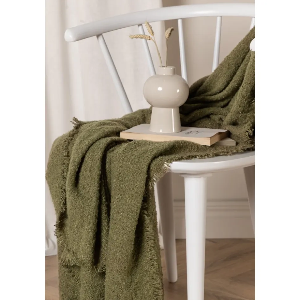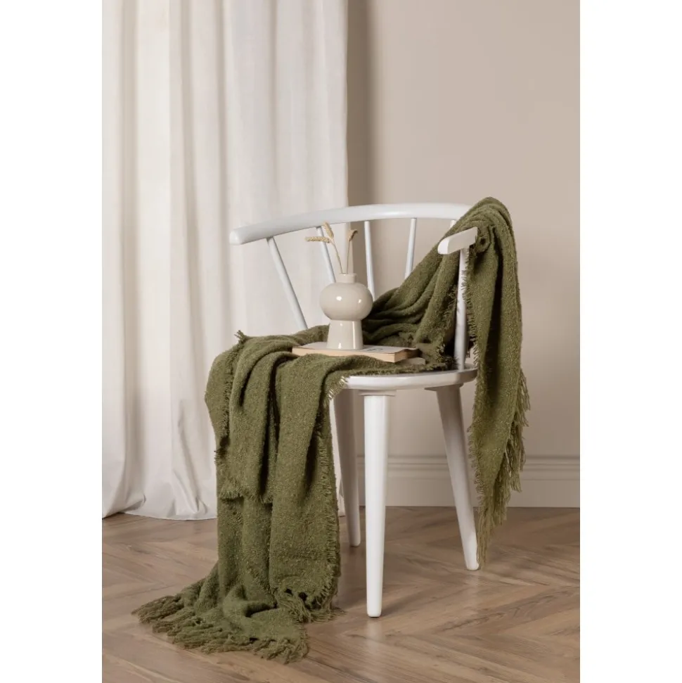 Pläd i jordnära kulör med följsam struktur. Tillverkad i akryltyg.