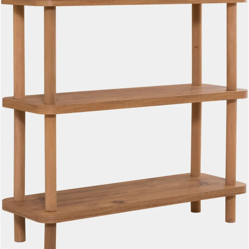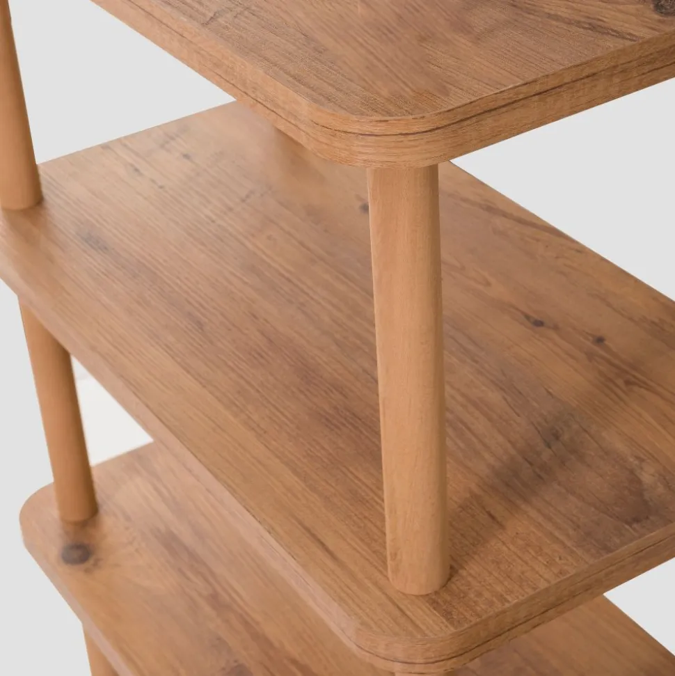 Bokhylla av melaminbelagd spånskiva och avenbok.