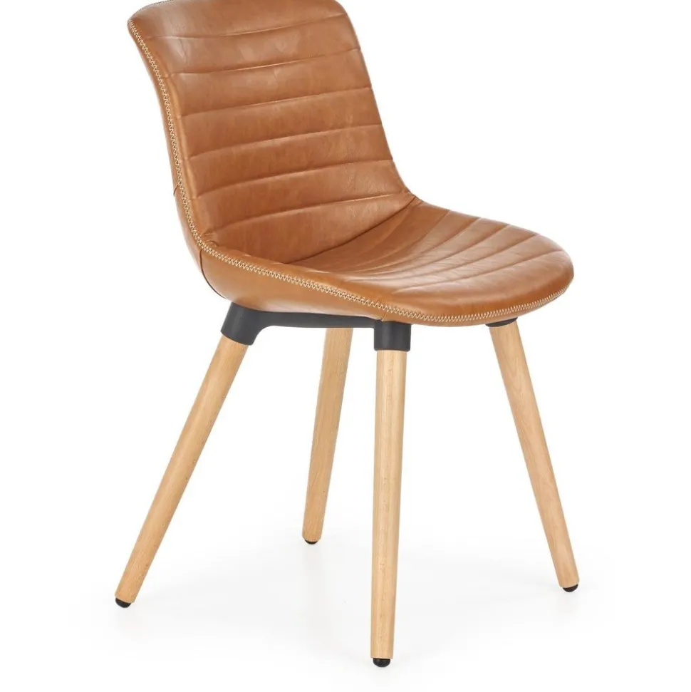 En snygg med en stilren design. Matstolen är tillverkad av solid trä med den naturliga trä looken på benen och sitsen är klädd med ett mycket behagligt konstläder för maximal komfort.