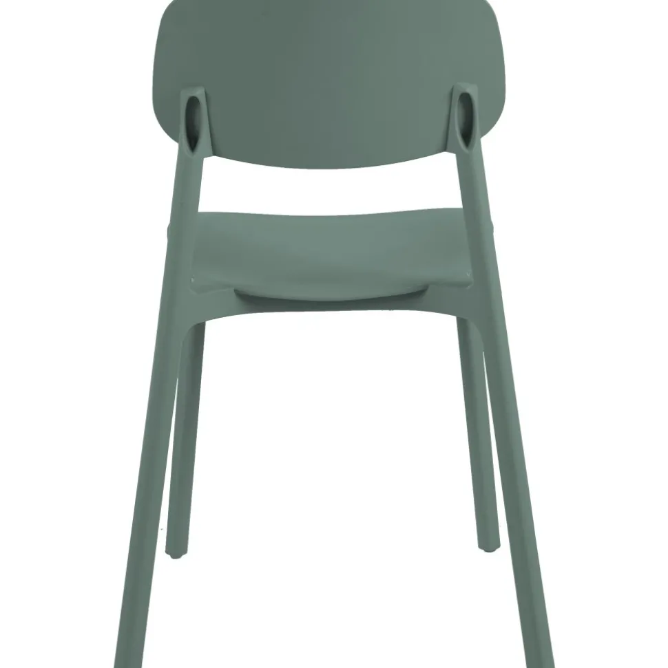 Grön stapelbar i väderbeständig polypropylene-plast. Matstolen går både att använda inomhus och utomhus.