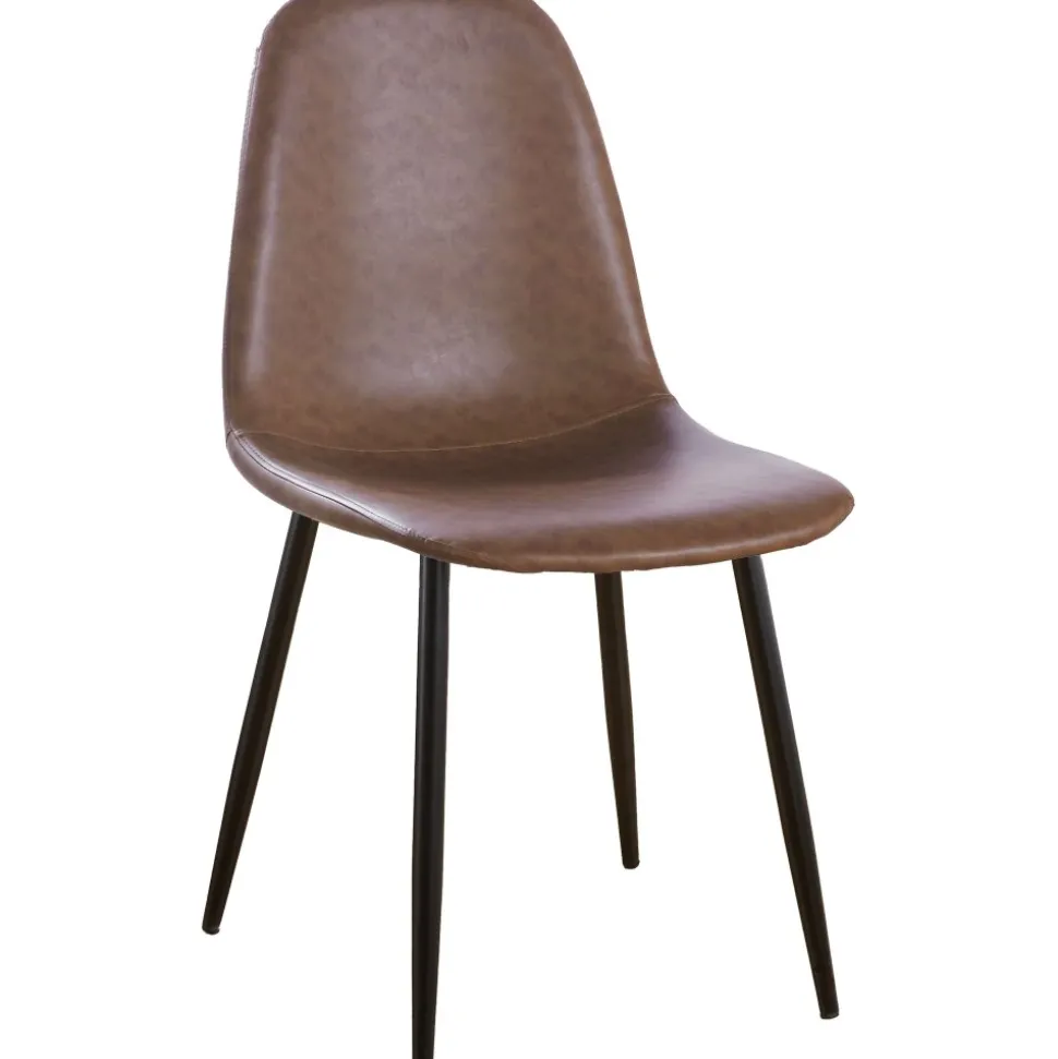 - Material: Sits och rygg i vintagebrun PU-läder, ben av svartmålad metall.