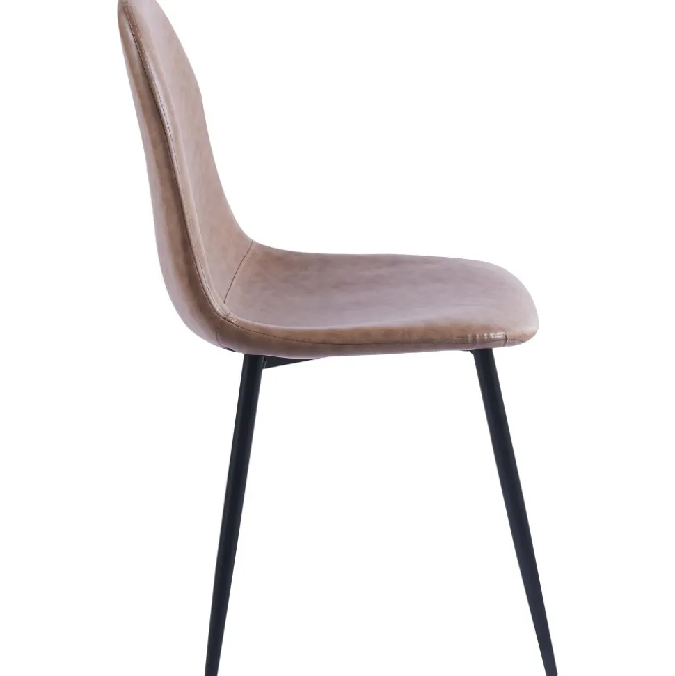 Carisma har en stilren design med en sits och rygg som är klädda i vintagebrun PU-läder. Denna kombination ger en tidlös estetik som passar perfekt i både samtida och klassiska inredningar, vilket gör den till ett utmärkt val för olika rum och miljöer.