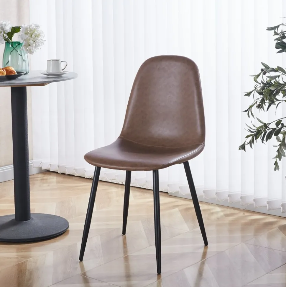 Med sin ergonomiska sits och rygg erbjuder stolen bekväm sittplats för långa stunder. Den vintagebruna klädseln i PU-läder är lätt att rengöra och underhålla, vilket gör den praktisk för både hemmabruk och kommersiella miljöer.