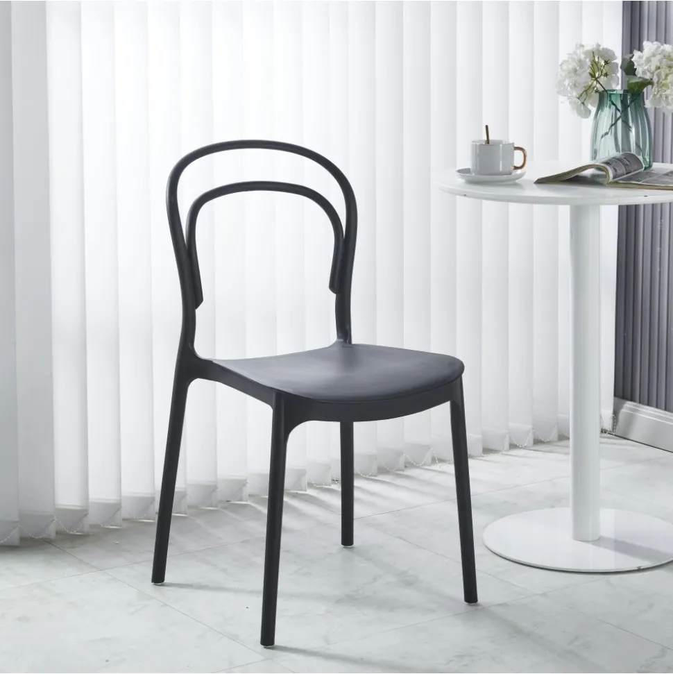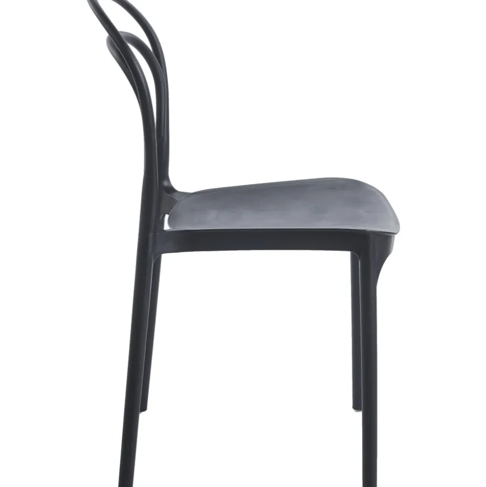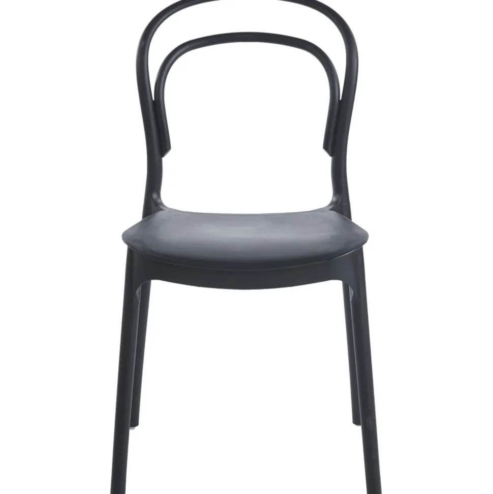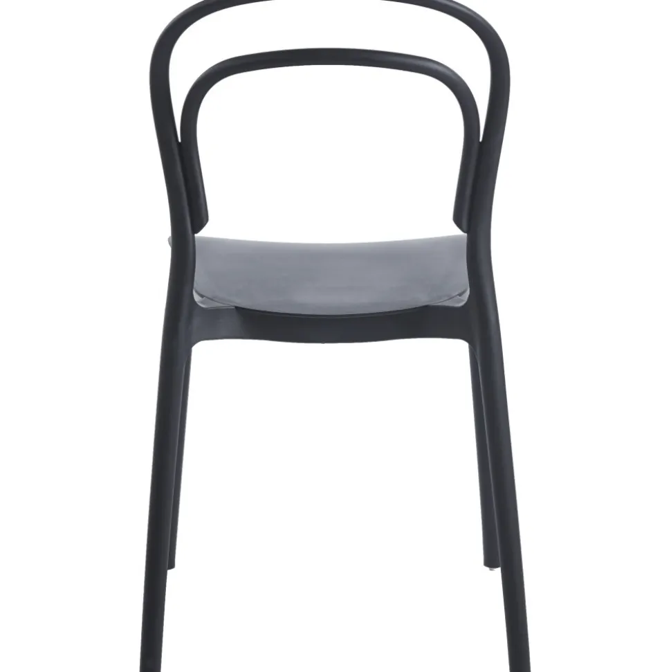 Svart i väderbeständig polypropylene-plast. Stolen är stapelbar. Det går att använda stolen både inomhus och utomhus.