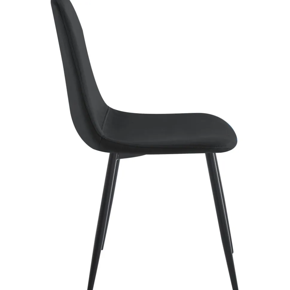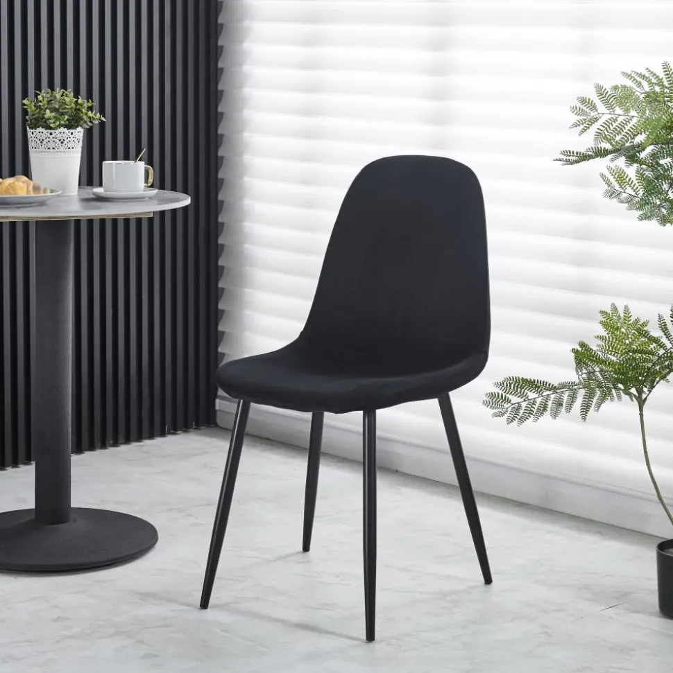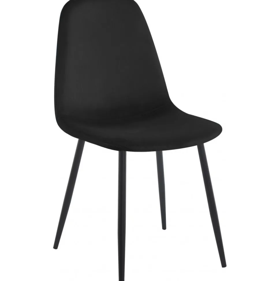 Stilfull och komfortabel som kombinerar elegans med god sittkomfort. Den svarta lyxiga sammetstyget och matchande smala svarta stålben skapar en harmonisk balans som ger stolen en äkta lyxig prägel.
