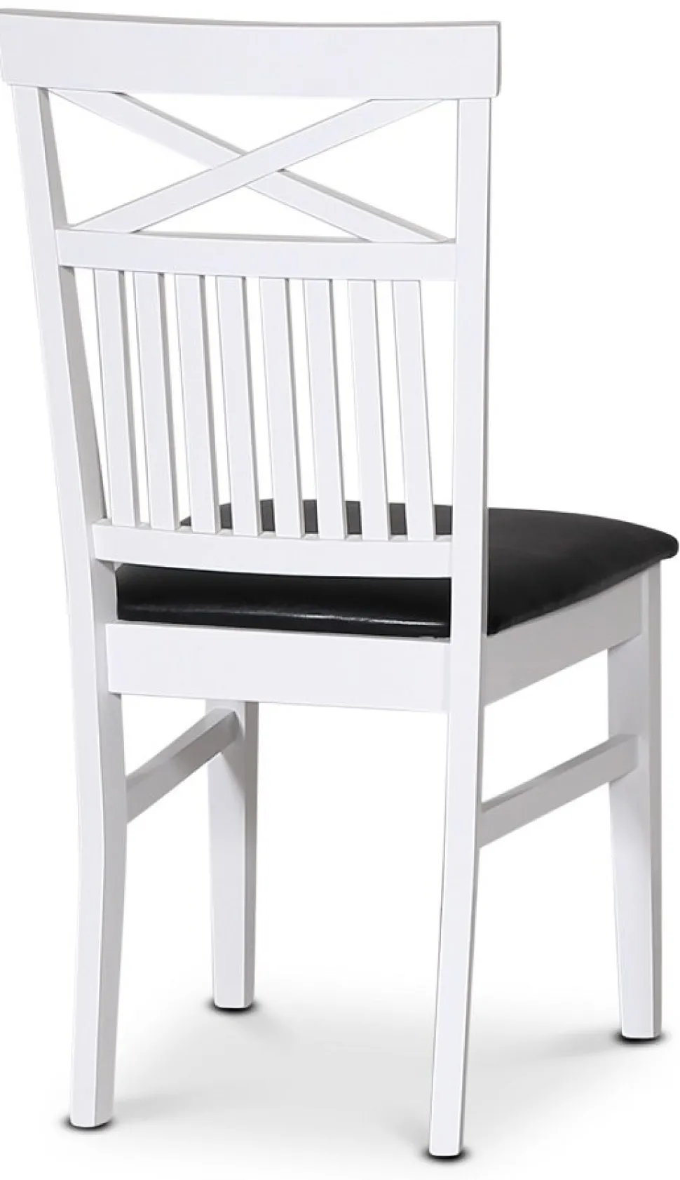 Våra matrums serier Fårö, Skagen och Dalarö är utformade i klassisk design där stilren design möter kvalitet. Denna med stomme i vitlackat massivt trä med sits i svart tålig PU. Kryss och raka ribbor i ryggen som en klassisk detalj.