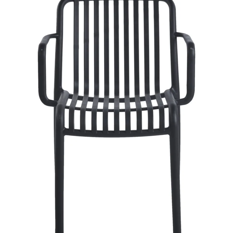 Noa är en svart i väderbeständig polypropylene-plast. Stapelbar . Matstolen går att använda både inomhus och utomhus.