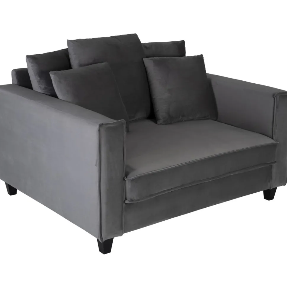 - Stor fåtölj i mörkgrå sammet – 138 cm bred
