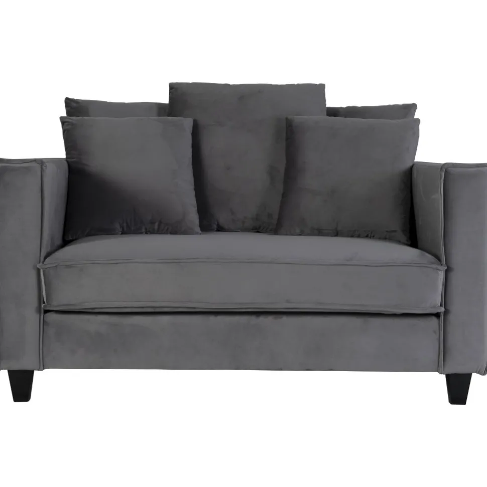 Fåtöljen finns i en sammetslen mörkgrå klädsel som passar soffans stil. Brandy står för ett inbjudande formspråk och en fantastisk sittkomfort.