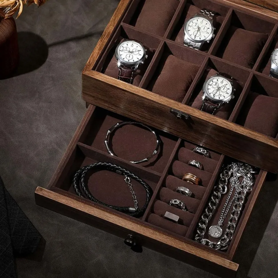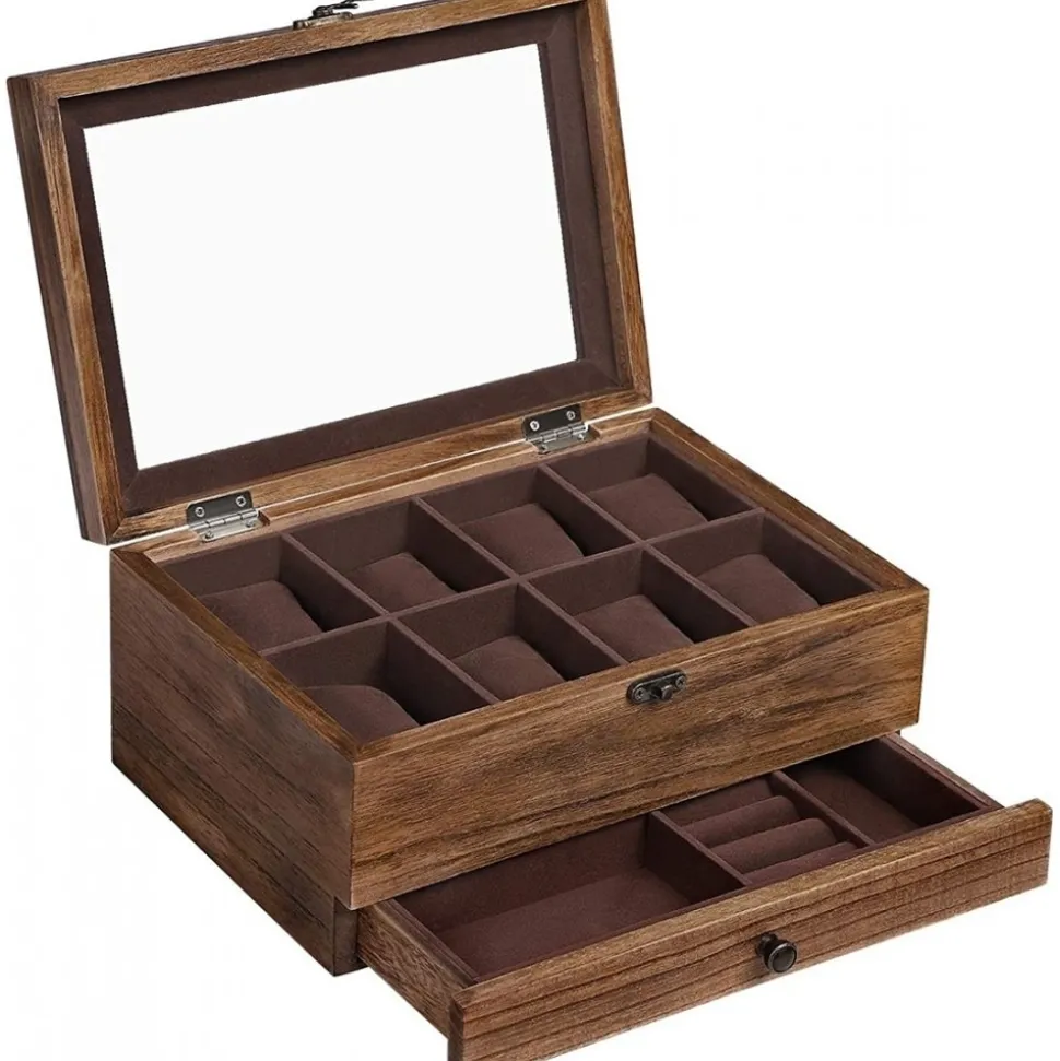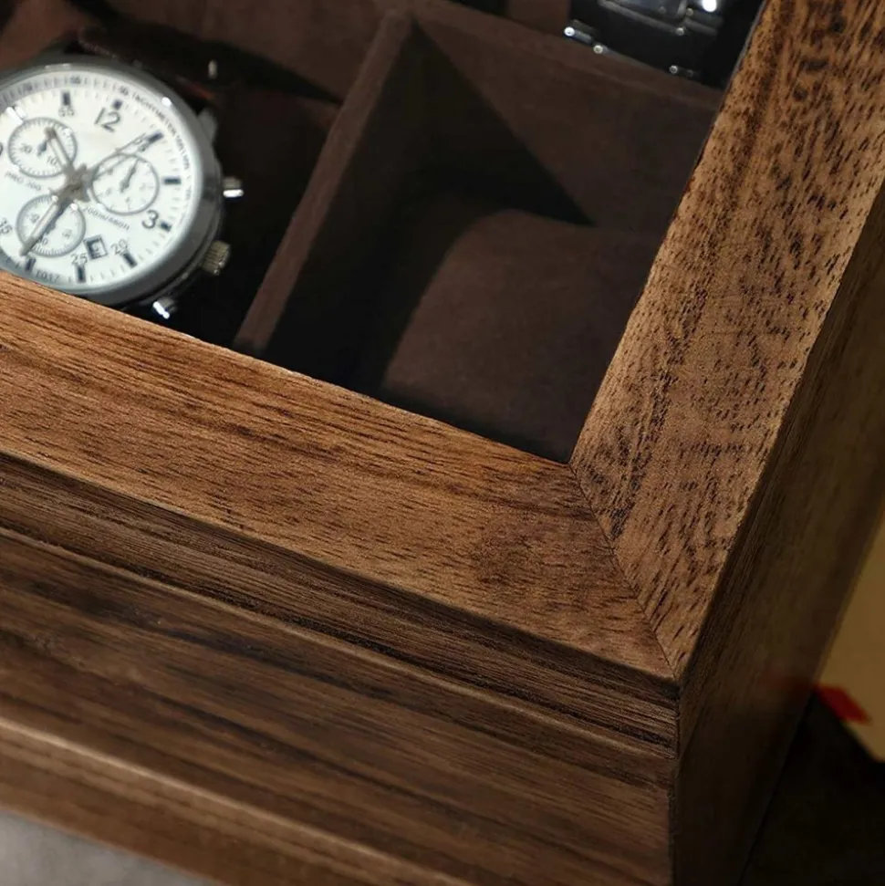 Smyckeskrin av trä med foder av sammet.