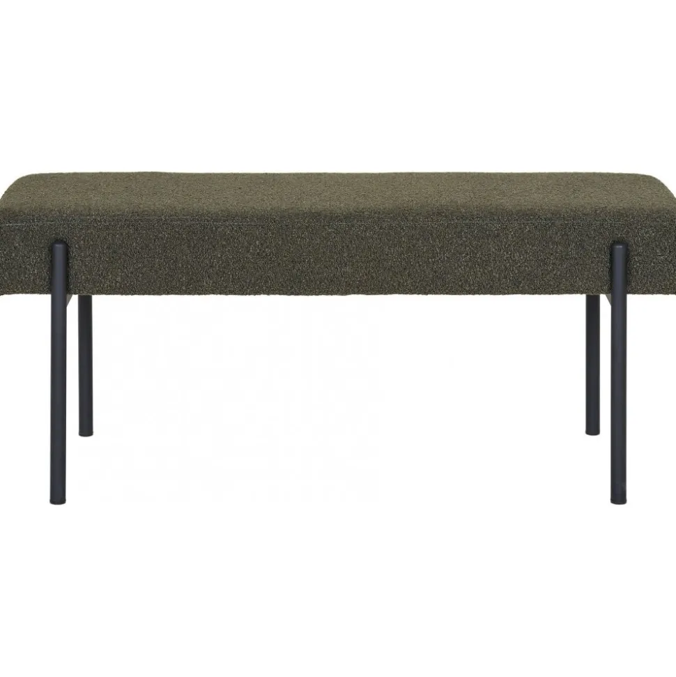 Sittbänk med klädsel av bouclétyg och ben av stål. Levereras omonterad.