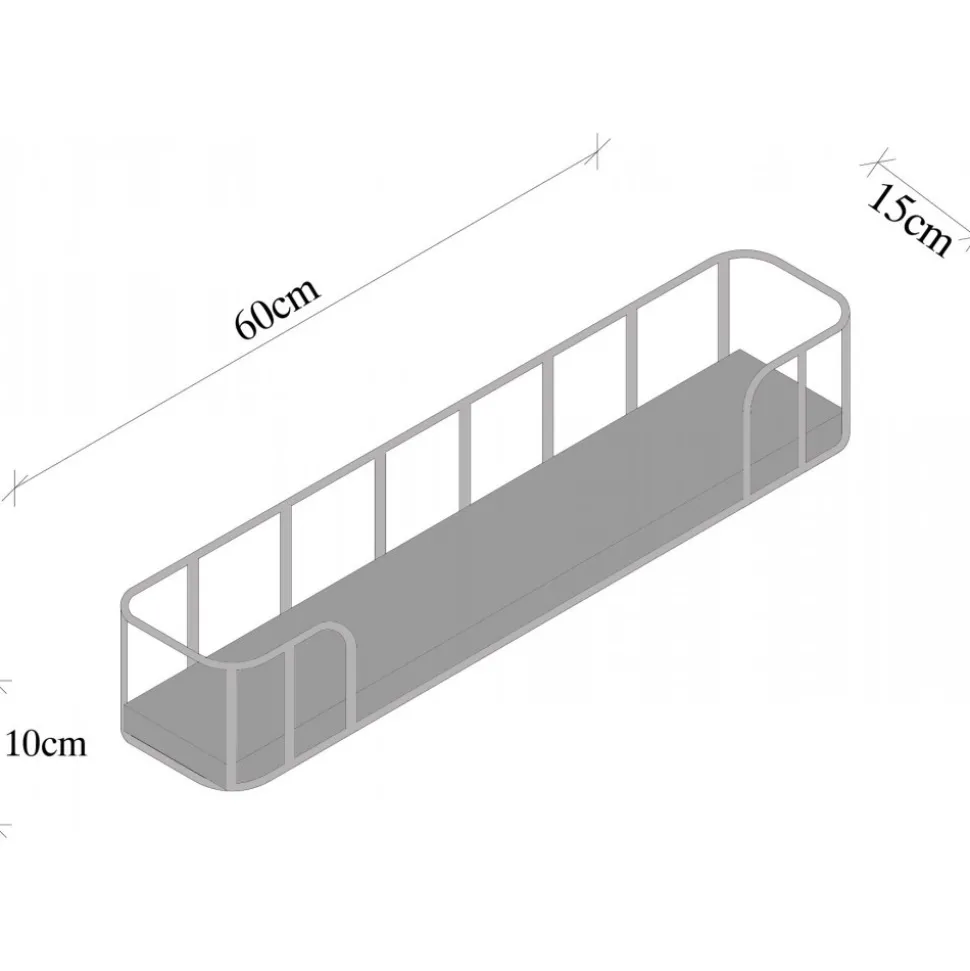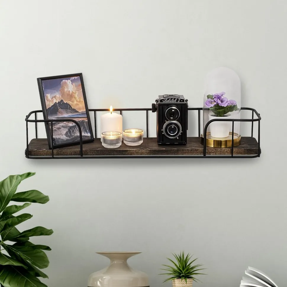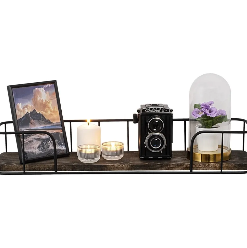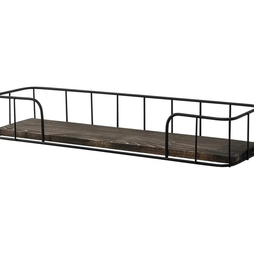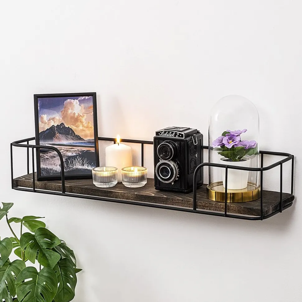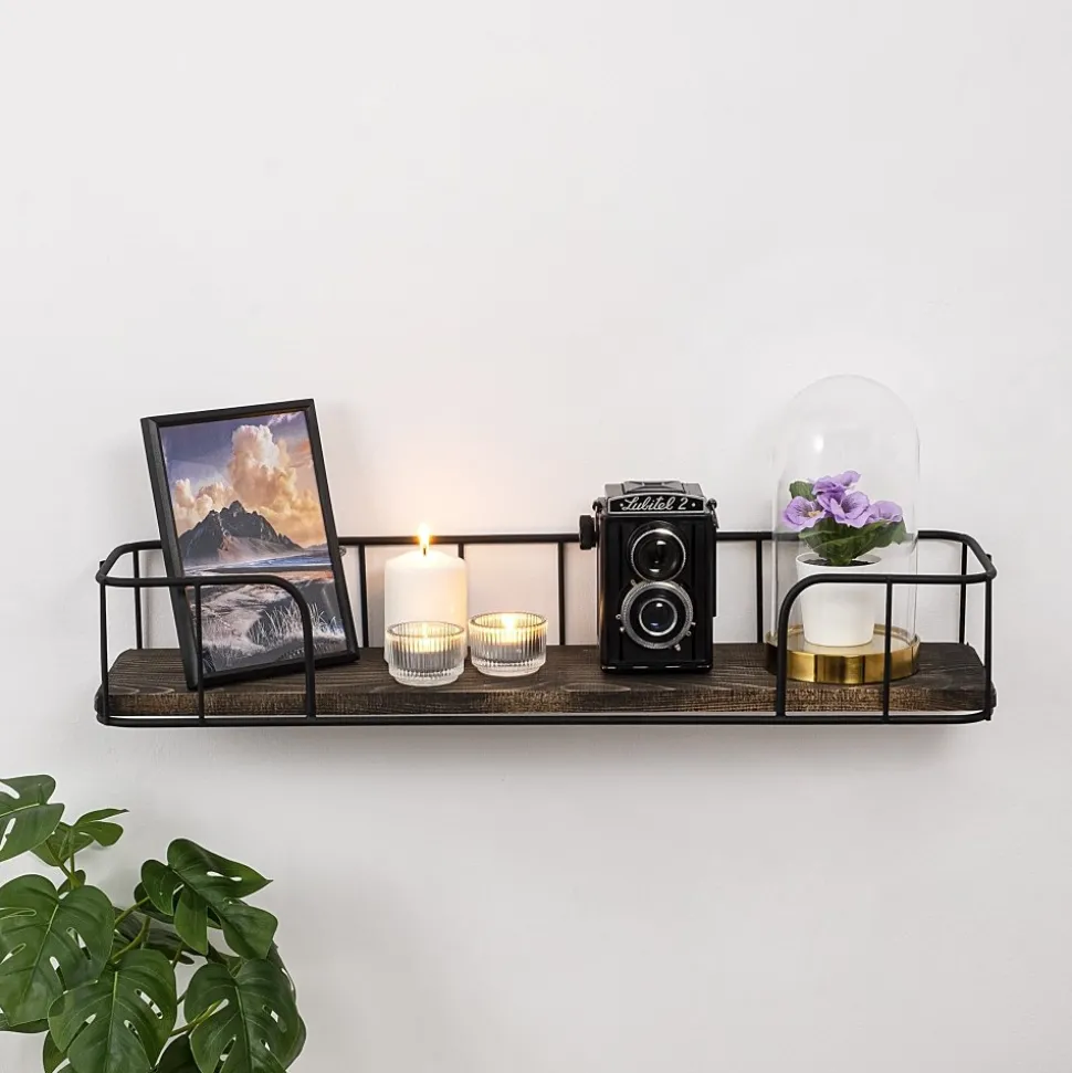 Vägghylla av granträ och metall. Eftersom produkten innehåller obearbetat trä kan produkten skilja i nyans och mönster mot bilden.